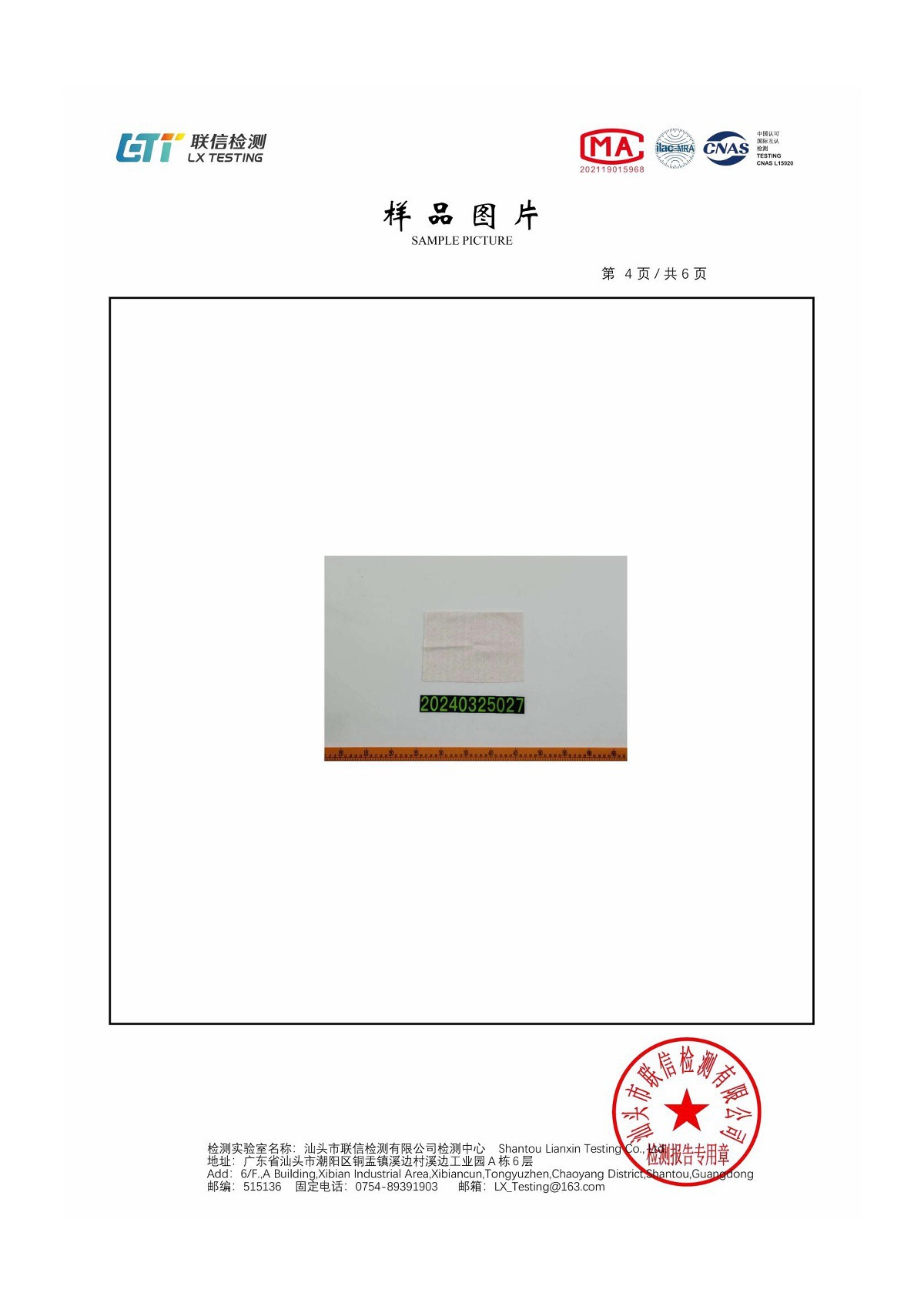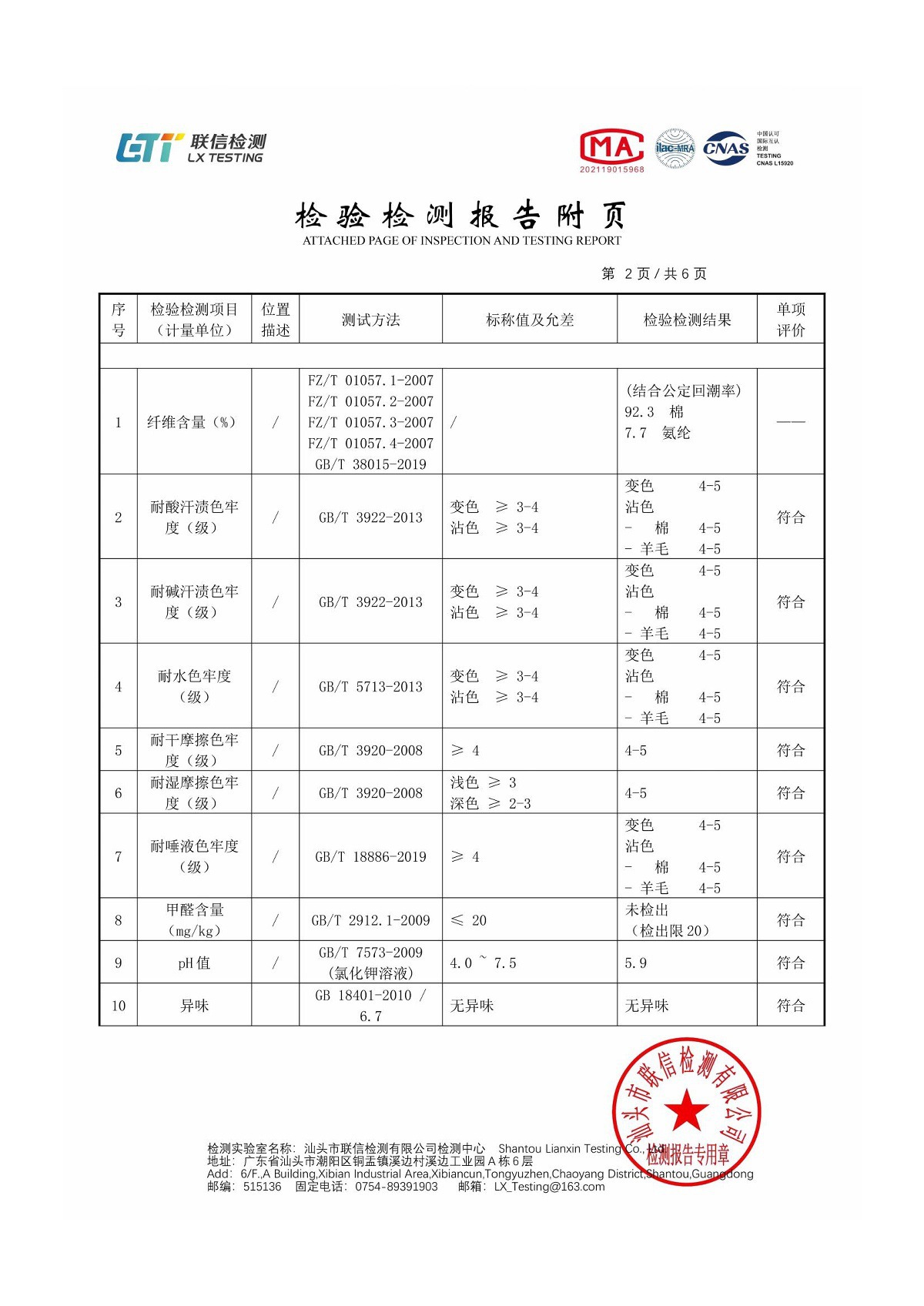 以下为布料检测报告