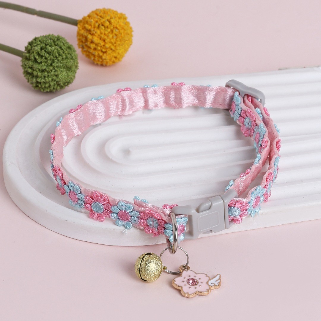 아마존 애완 동물 목걸이 다채로운 레이스 꽃 고양이 목걸이 강아지 보석 칼라 벨 칼라 고양이 액세서리