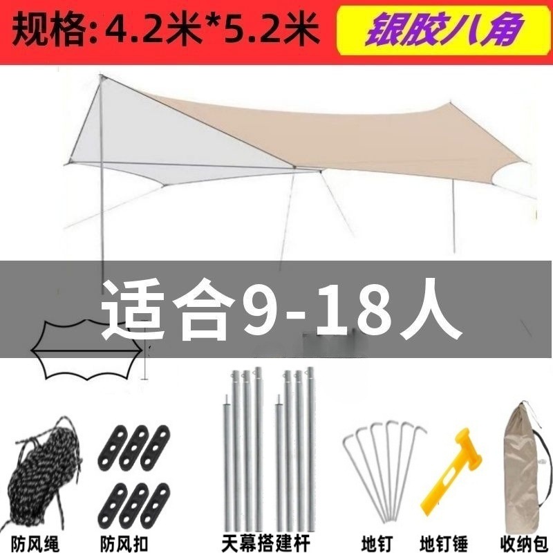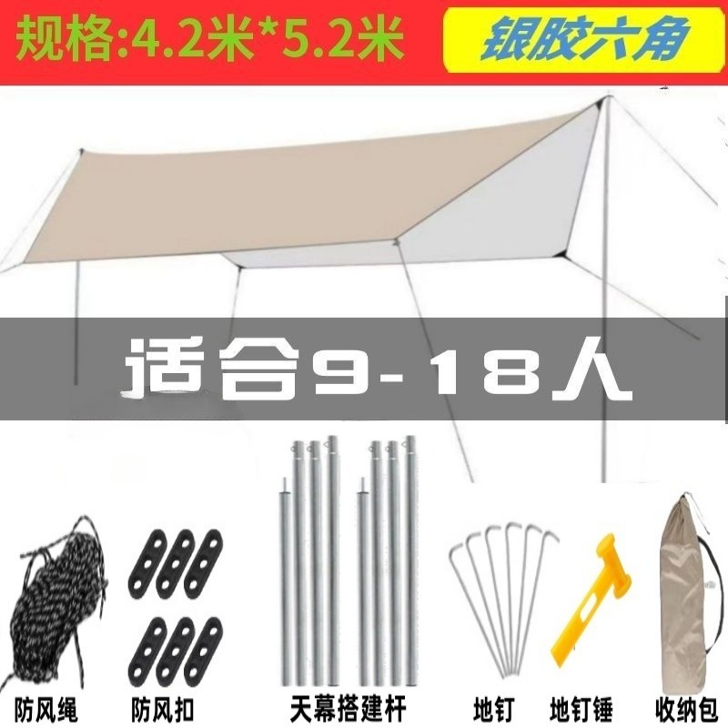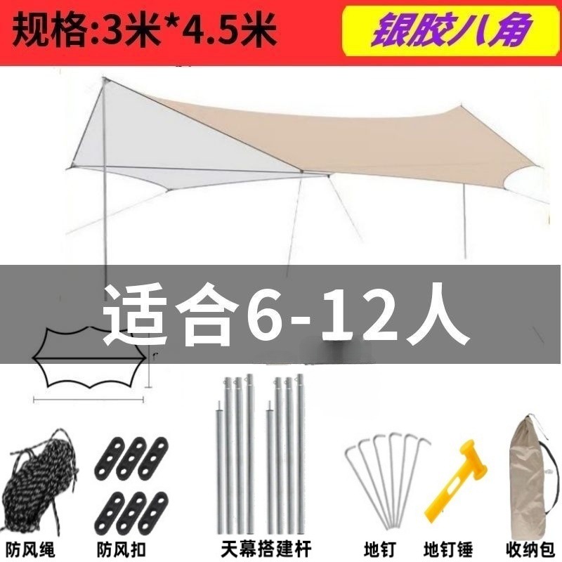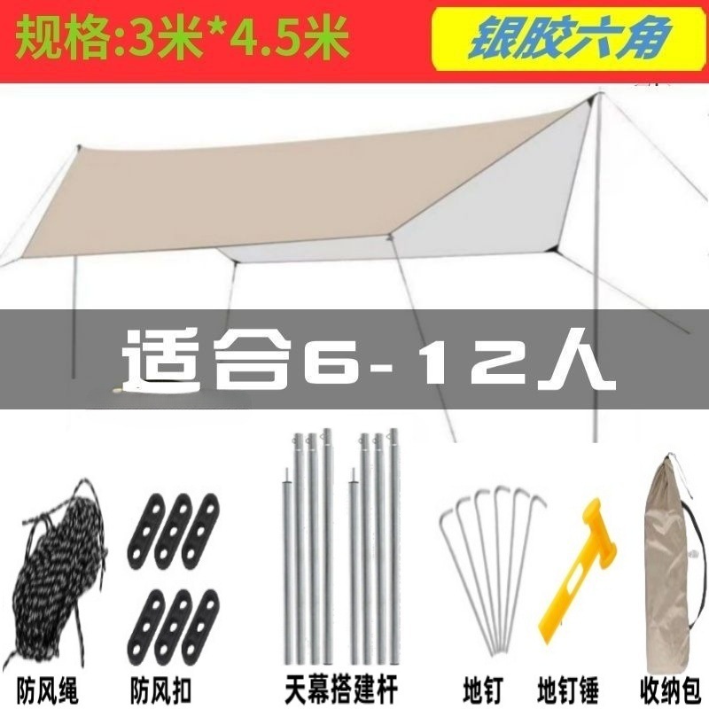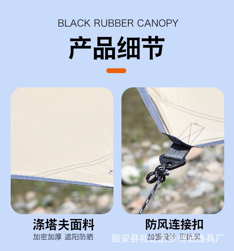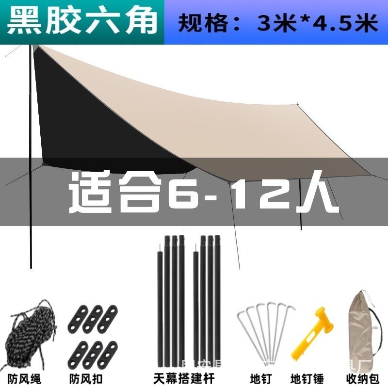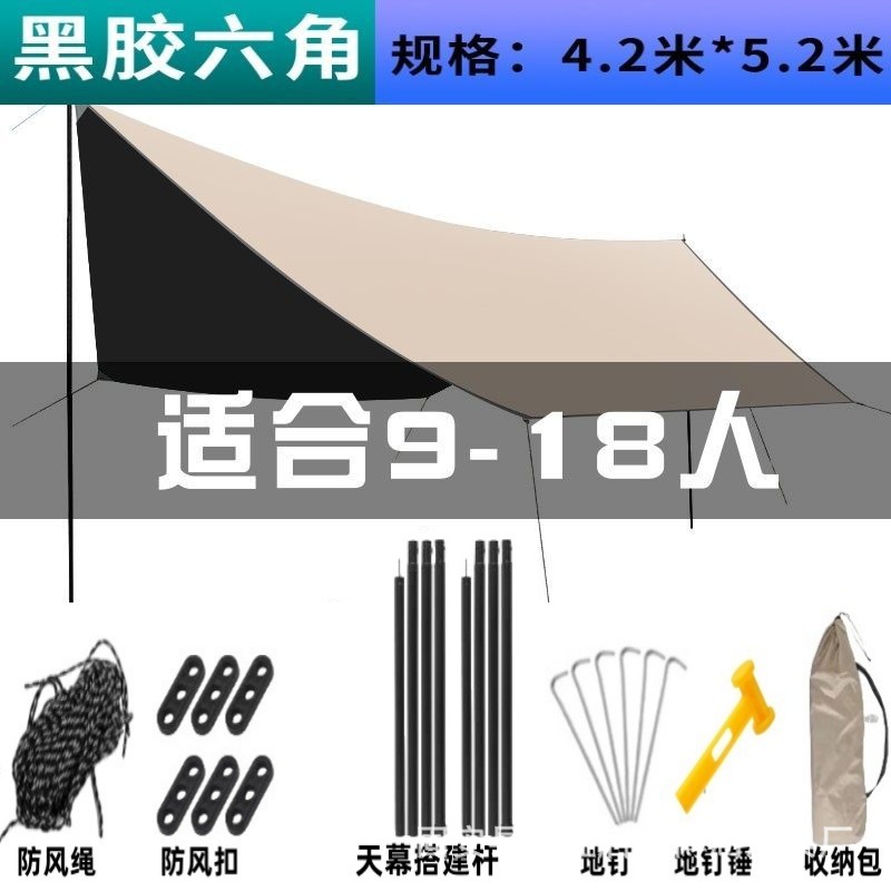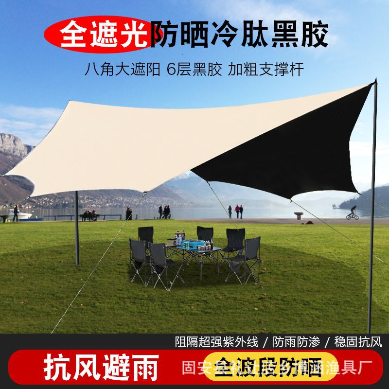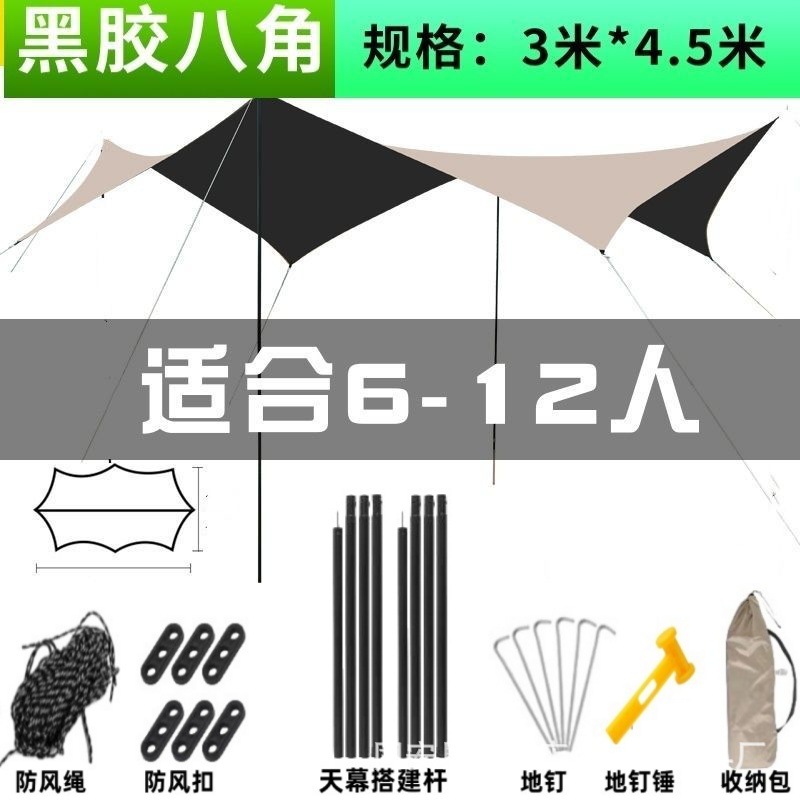 나비 팔각형 검은 고무 육각형 캐노피 자외선 차단 방열 차양 캠핑 텐트 피크닉 야외 캐노피 캠핑