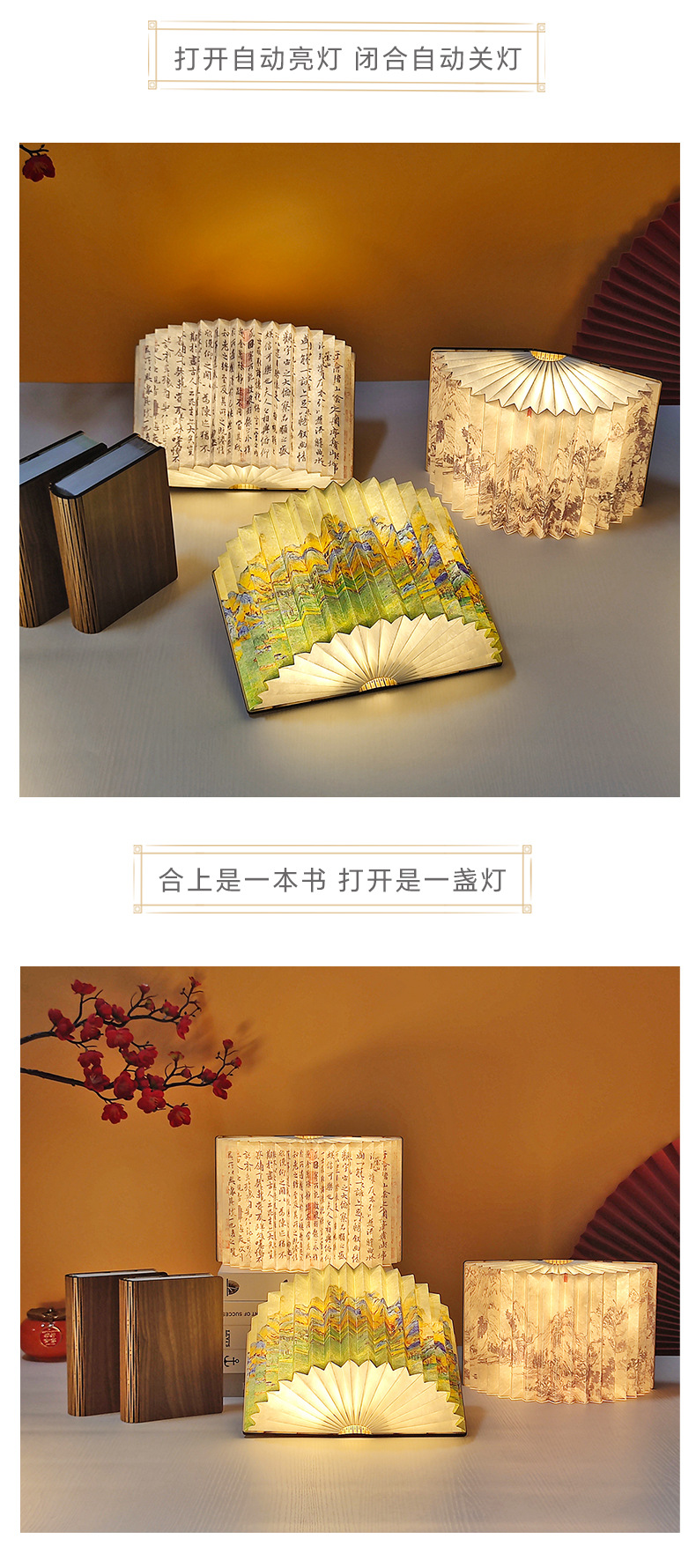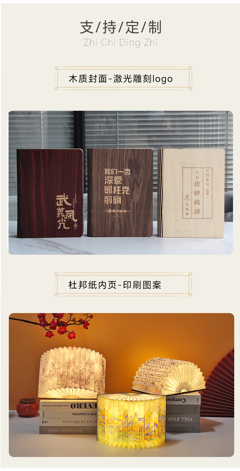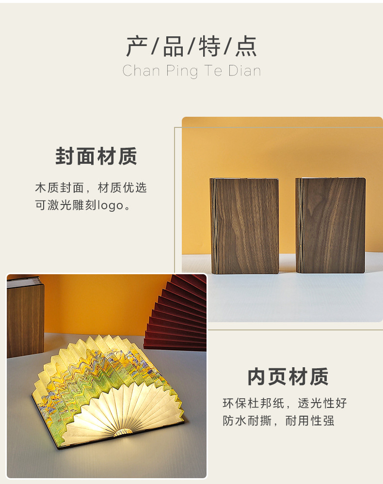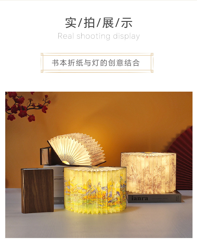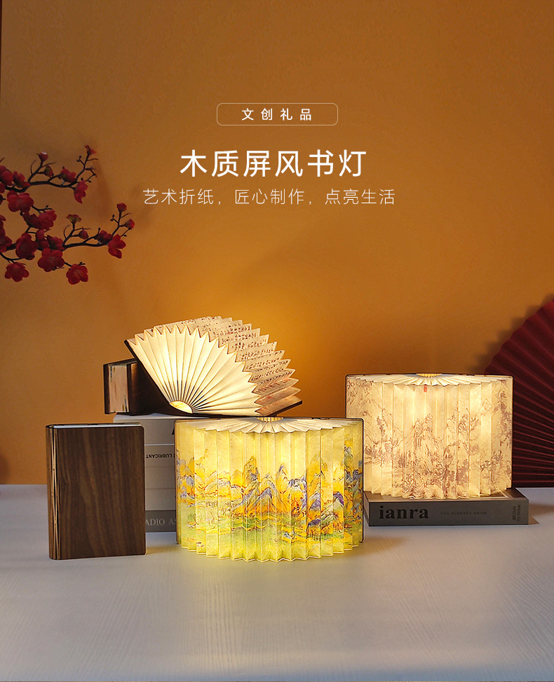 창조적 인 선물 나무 접는 책 램프 분위기 테이블 램프 Led 밤 빛 캠퍼스 문화 및 창조적 인 선물 중추절 동반 행사