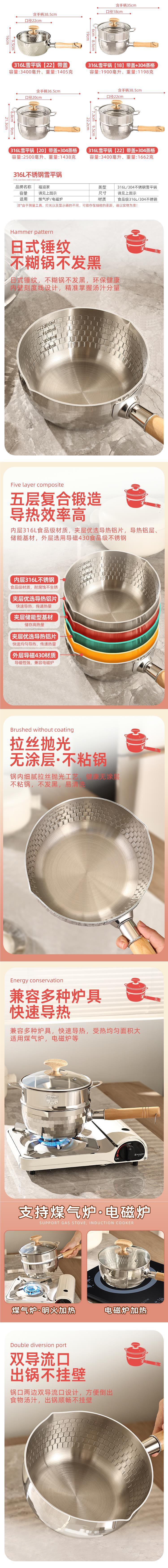 316 스테인레스 스틸 스노우 플랫 냄비 1인용 전자레인지 소형 냄비 가정용 국수 냄비 뜨거운 우유 붙지 않는 냄비 식품 보충 냄비스토어 가기