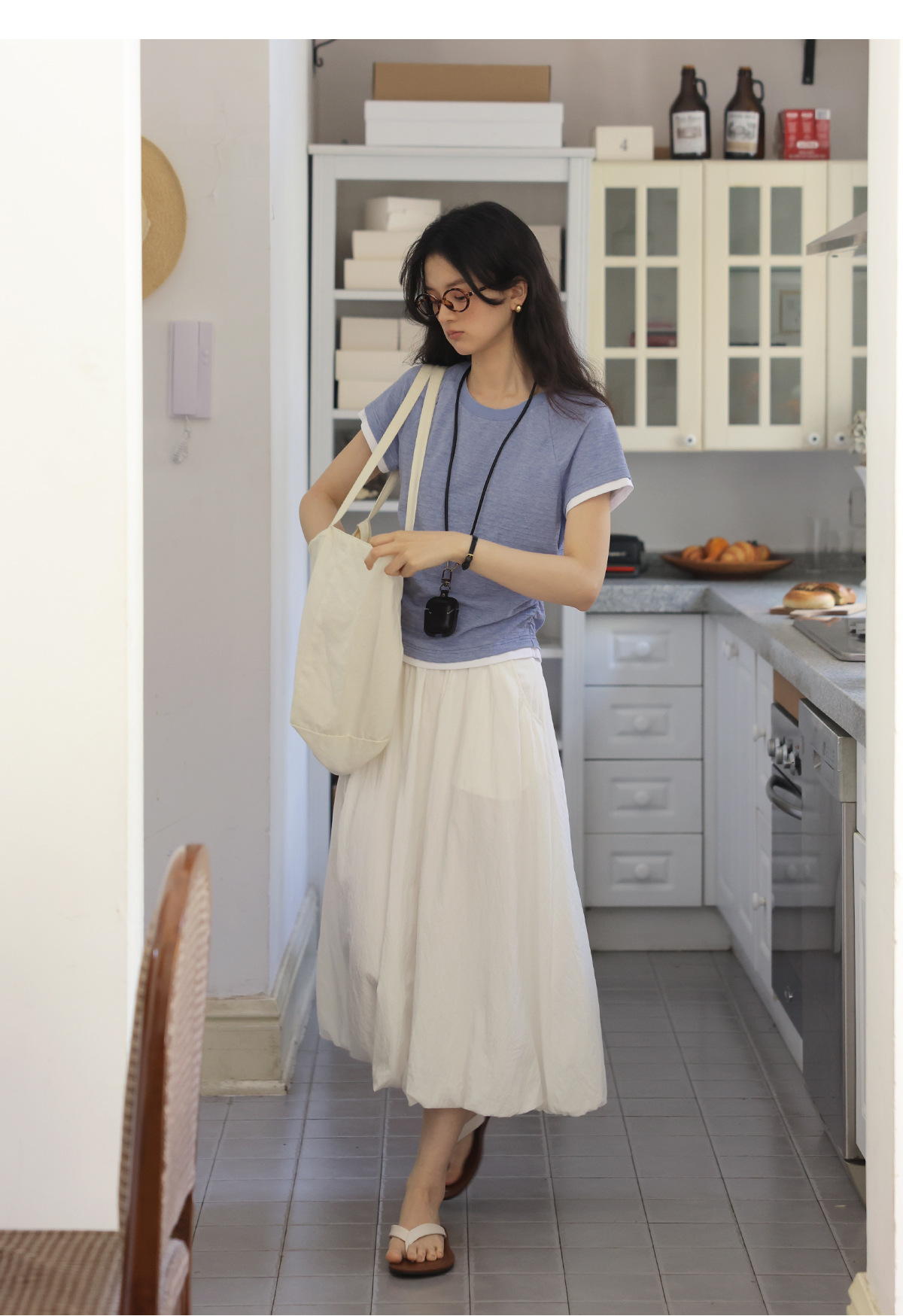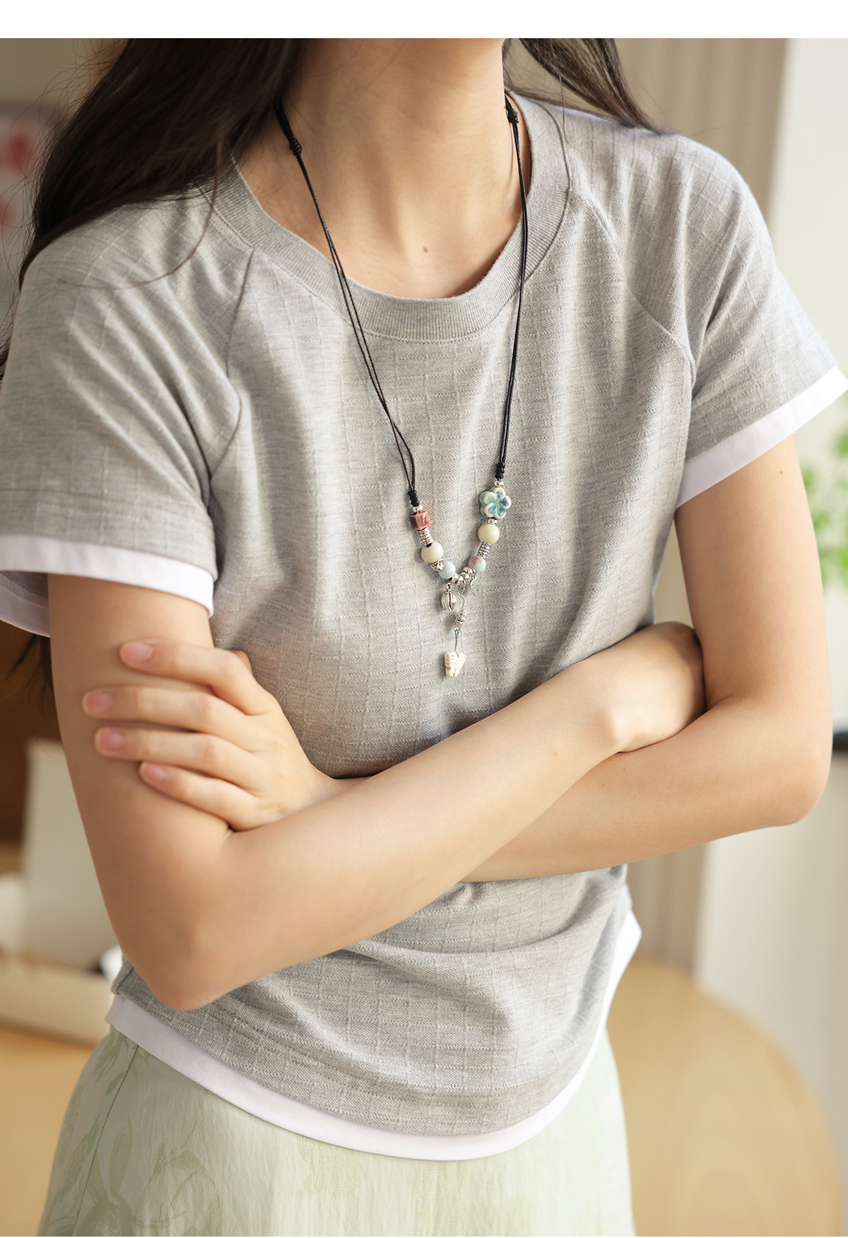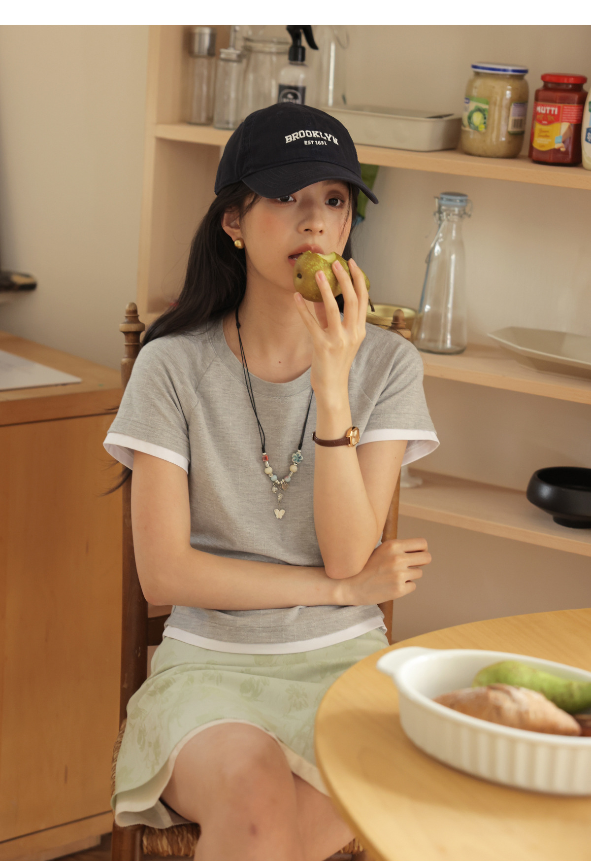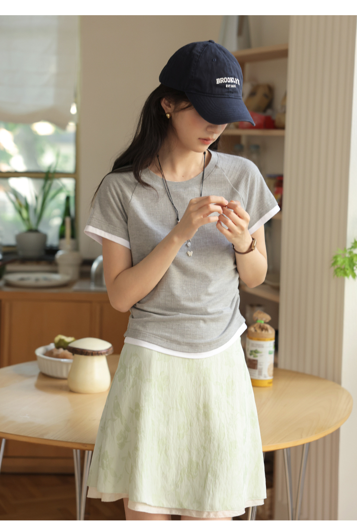 솔라이터 프렌치 컬러 대비 슬림 핏 라글란 슬리브 티셔츠 여성 여름 2025 새로운 허리 디자인 탑스토어 가기