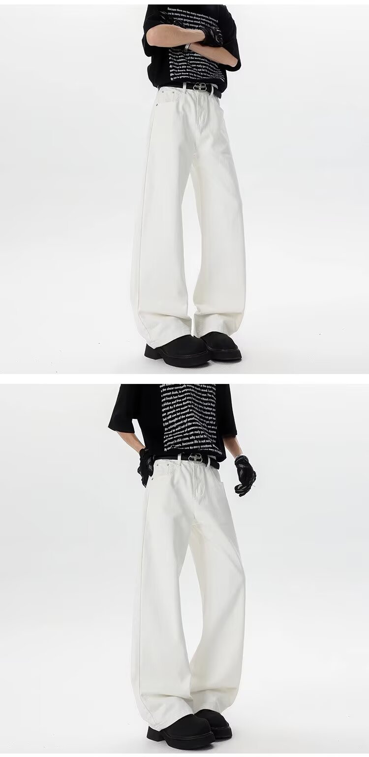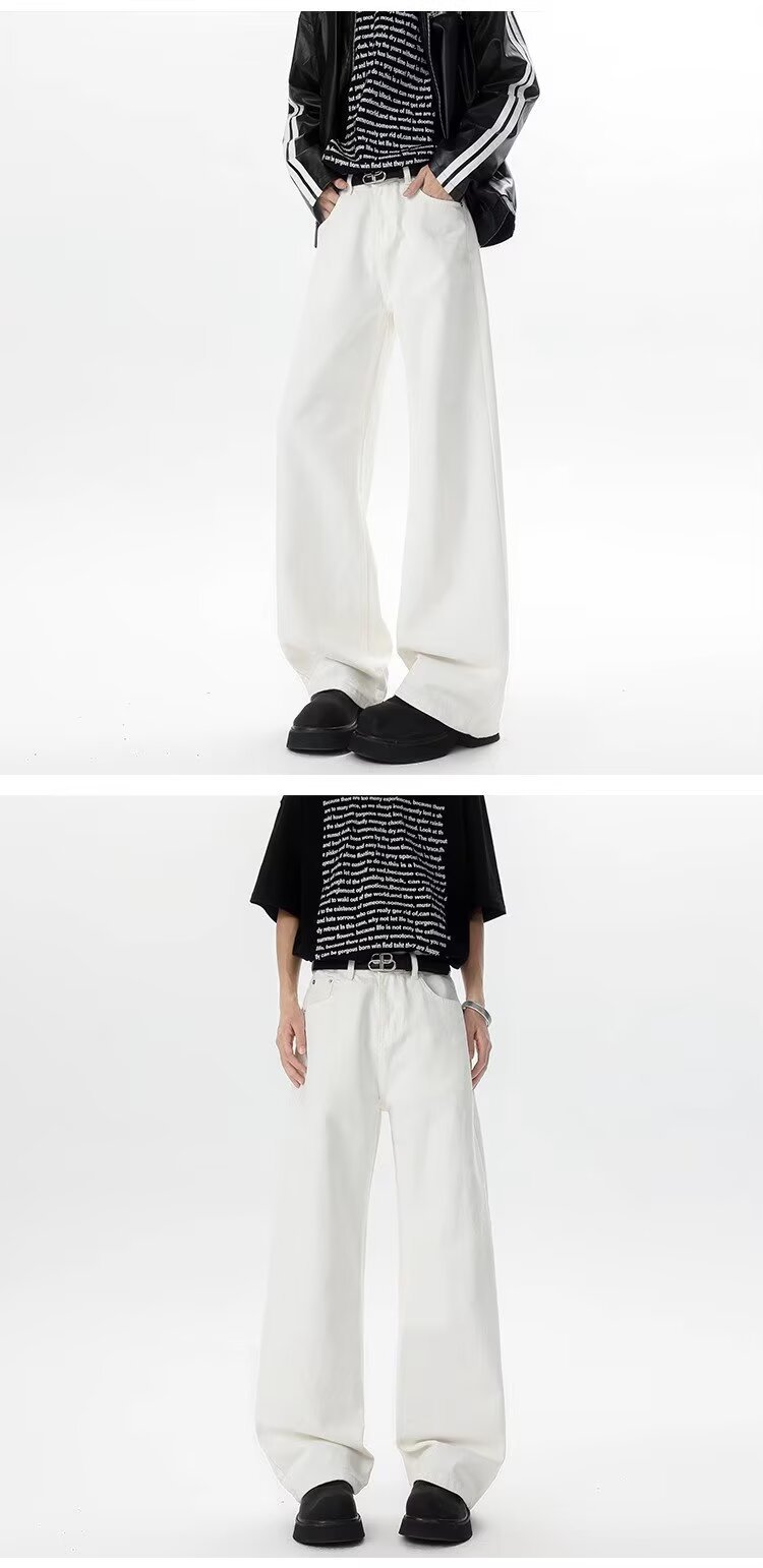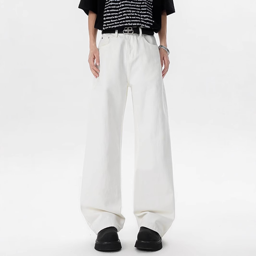 Cleanfit 화이트 청바지 남성 아메리칸 하이 스트리트 바이브 스트레이트 바지 디자인 틈새 루즈 캐주얼 바지
