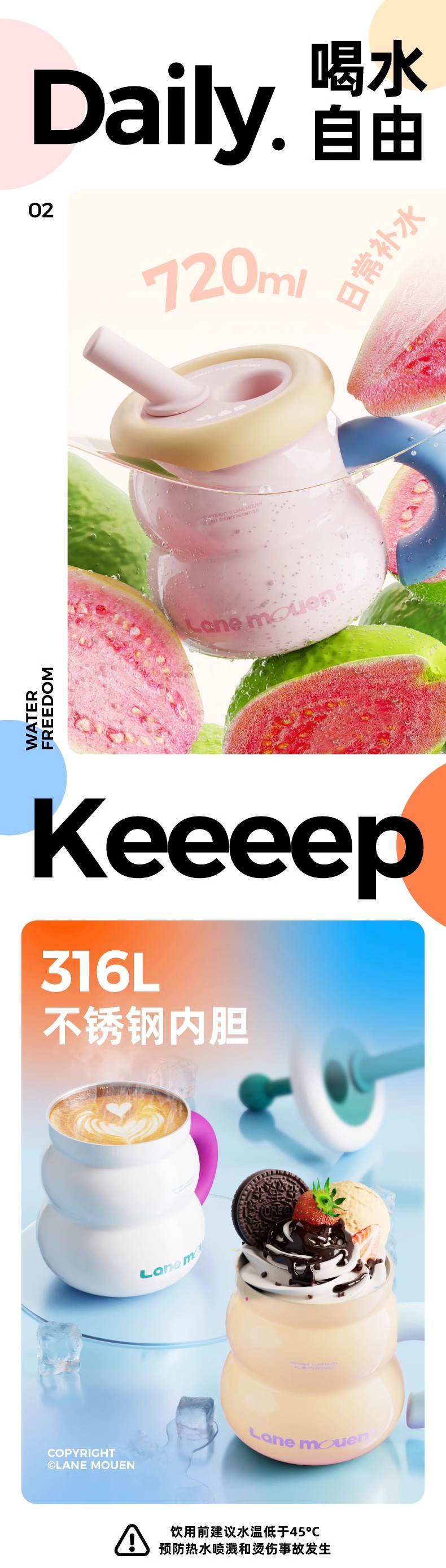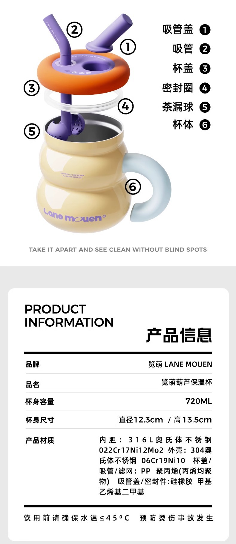 LaneMouen 보온병 컵 소녀 물 컵 316L 스테인레스 스틸 컵 밀짚 컵 선물 상자 초대형 용량스토어 가기
