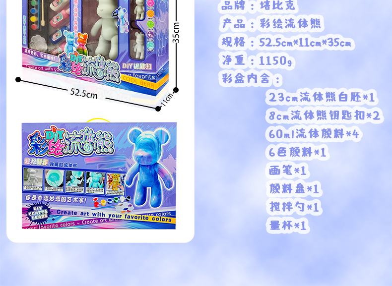 페인트 유체 곰 부모-자식 페인트 유체 결합 소년과 소녀 곰 인형 DIY 키 체인 장난감 선물 상자 도매스토어 가기
