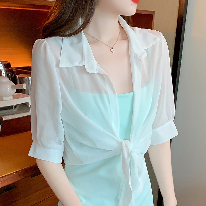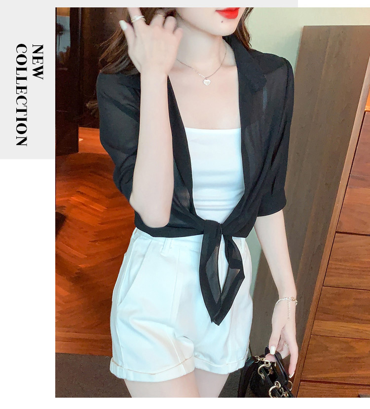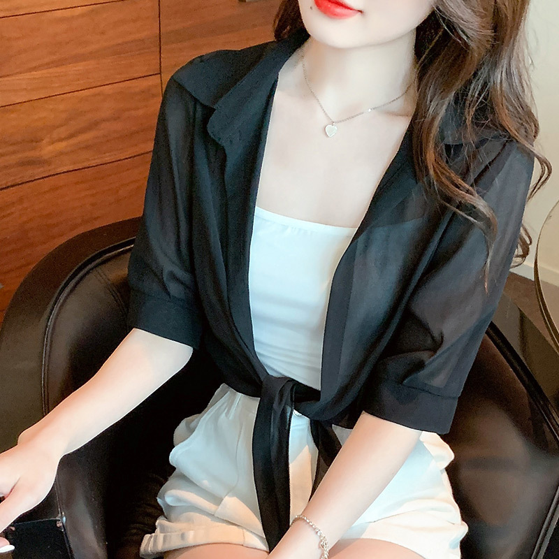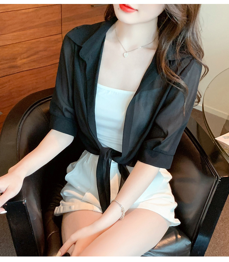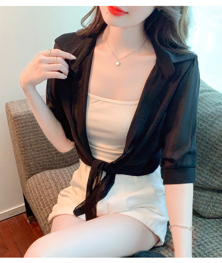 여성용 얇은 레이스 업 숄과 코트, 자외선 차단 의류, 패셔너블하고 다재다능한 슬리밍 짧은 쉬폰 가디건스토어 가기
