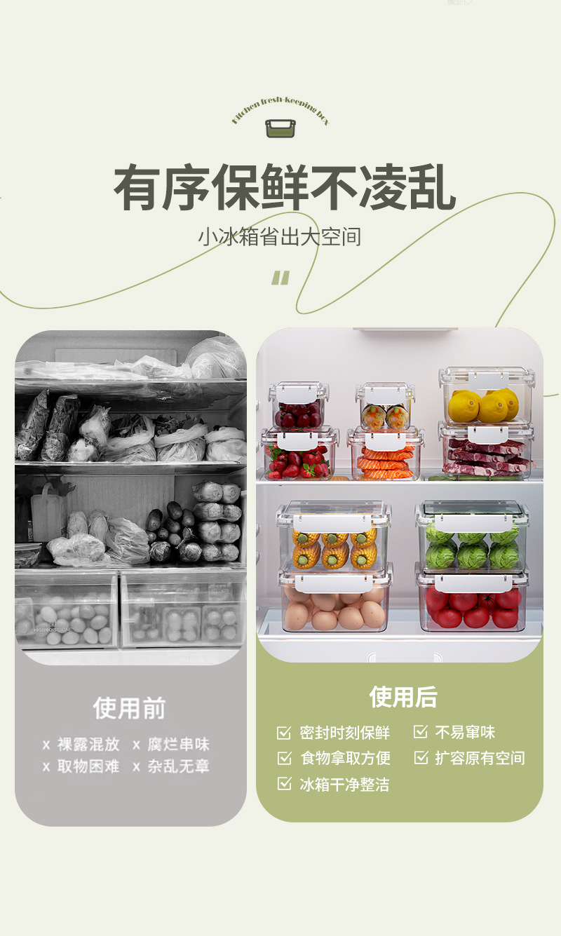 보존 상자 사각형 냉장고 과일 주방 성인 전자 레인지 가열 가능한 야채 냉동 고기 밀봉 상자스토어 가기