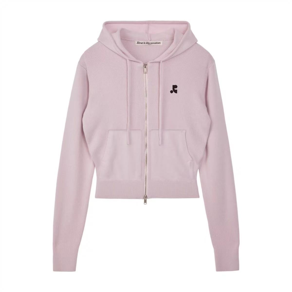 한국 틈새 트렌디 브랜드 restandrecreation 스웨터 후드 지퍼 카디건 RR 여성용 짧은 재킷