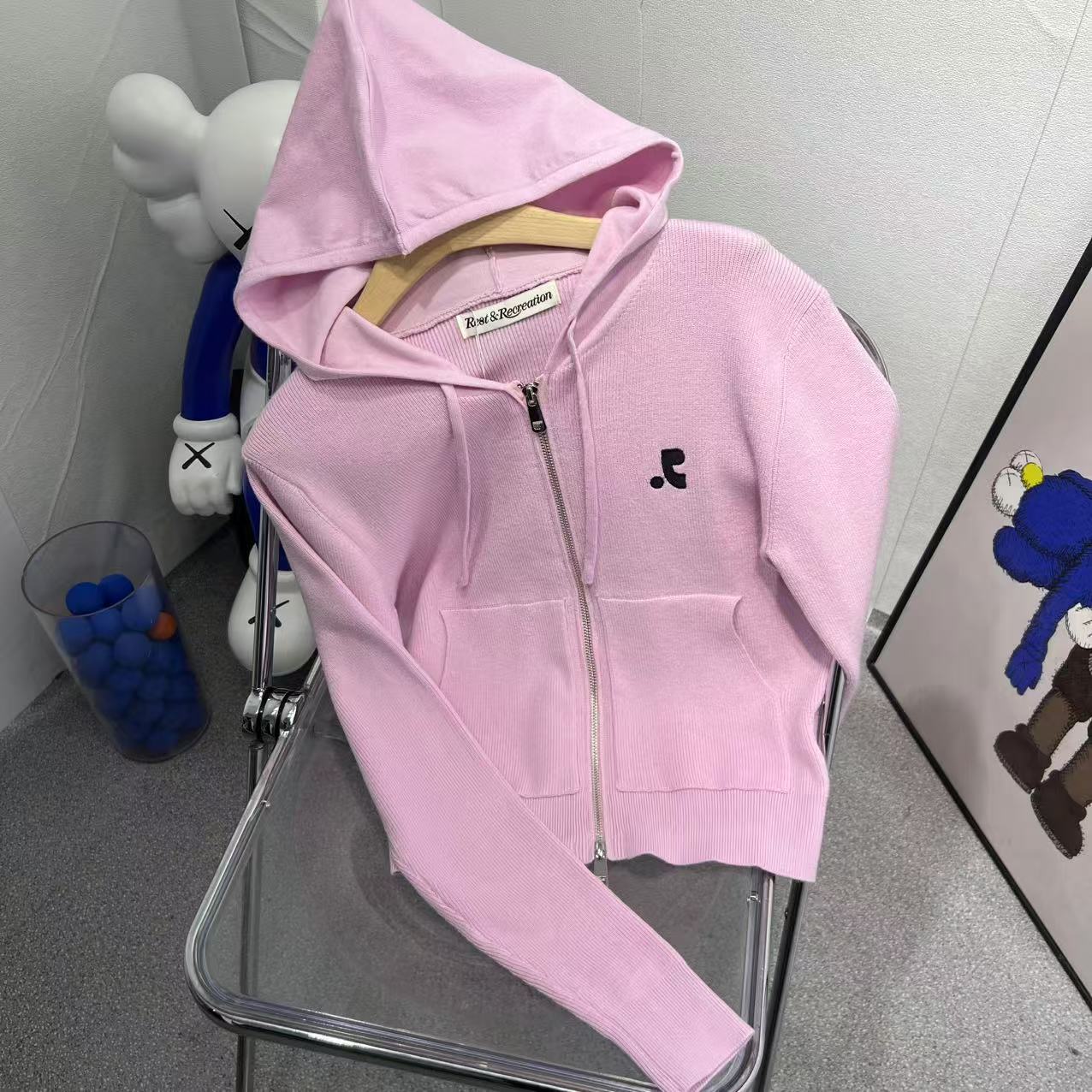한국 틈새 트렌디 브랜드 restandrecreation 스웨터 후드 지퍼 카디건 RR 여성용 짧은 재킷스토어 가기