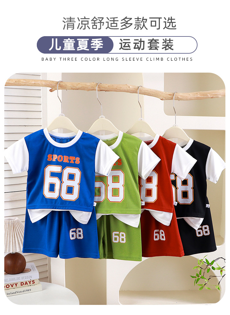 여름 어린이 반팔 반바지 세트 소년 캐주얼 스포츠 세트 소년 느슨한 저지 가짜 투피스 세트스토어 가기