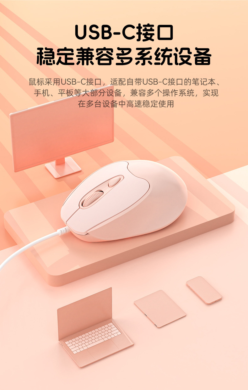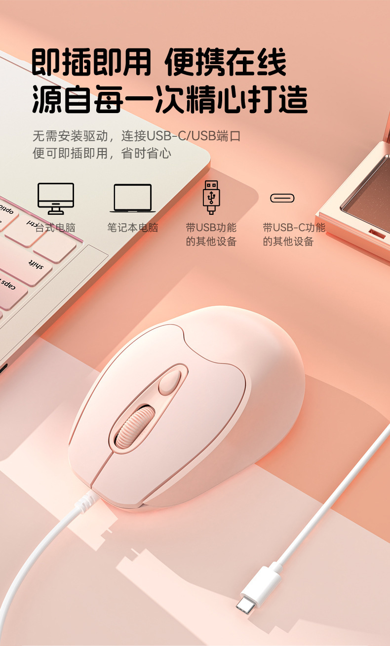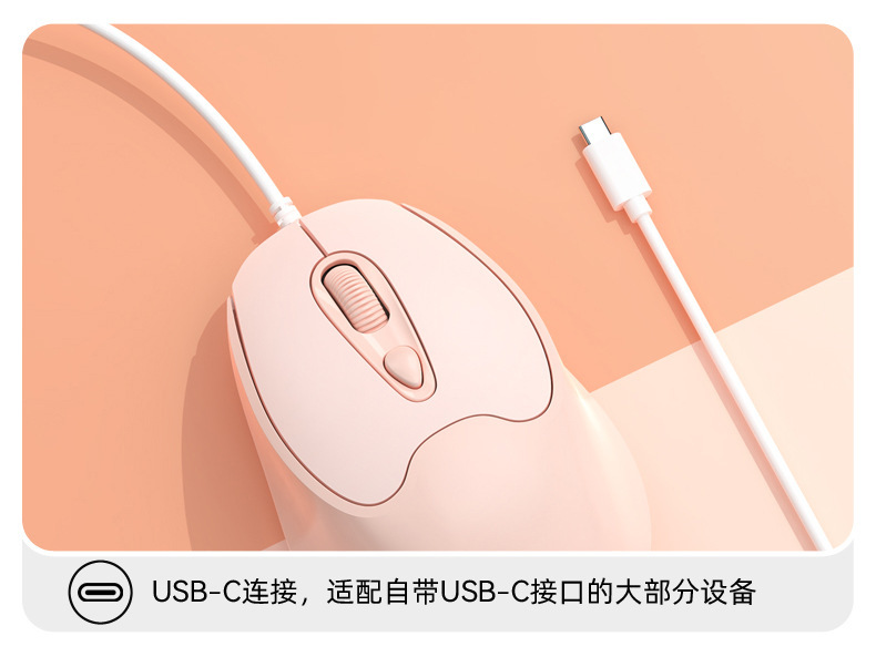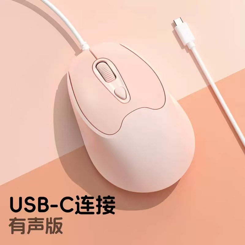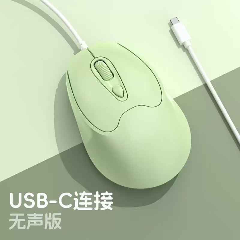 유선 마우스 Type-C 인터페이스 무소음 버튼 노트북 데스크탑 휴대폰 사무실 가정용 마우스 USB 마카롱