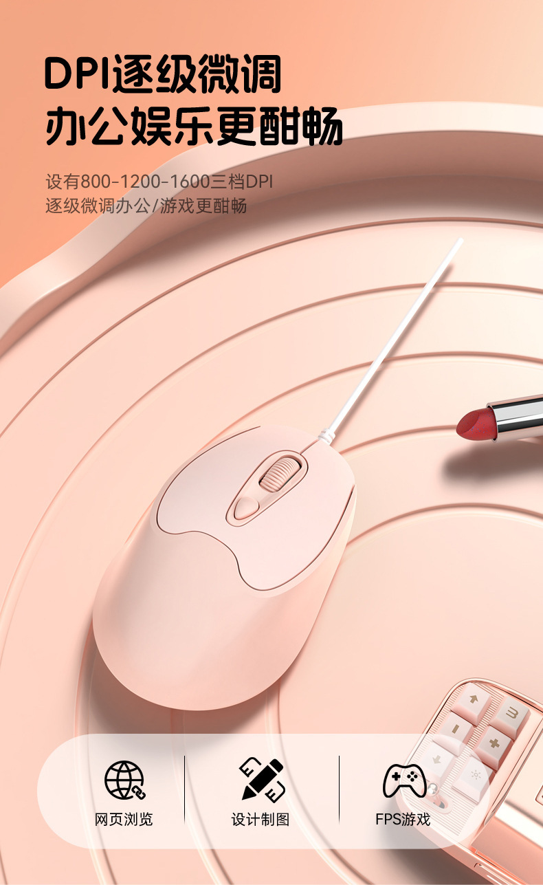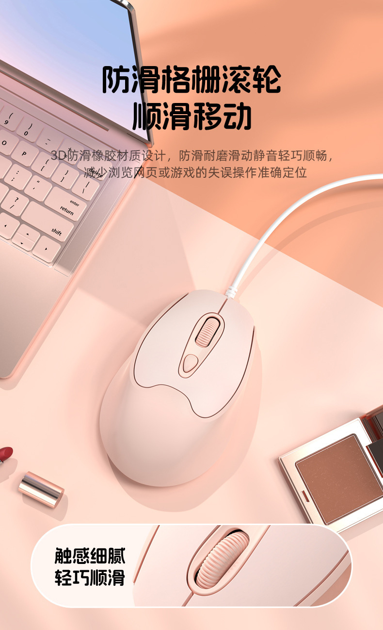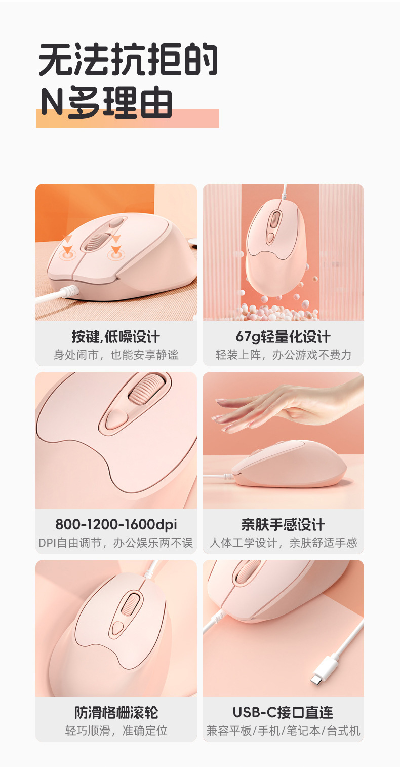 유선 마우스 Type-C 인터페이스 무소음 버튼 노트북 데스크탑 휴대폰 사무실 가정용 마우스 USB 마카롱