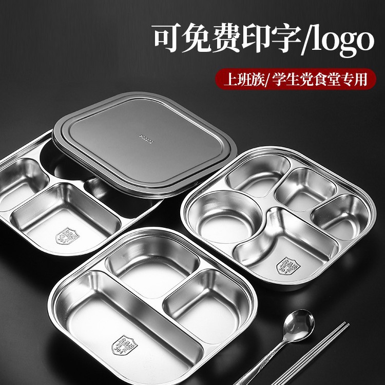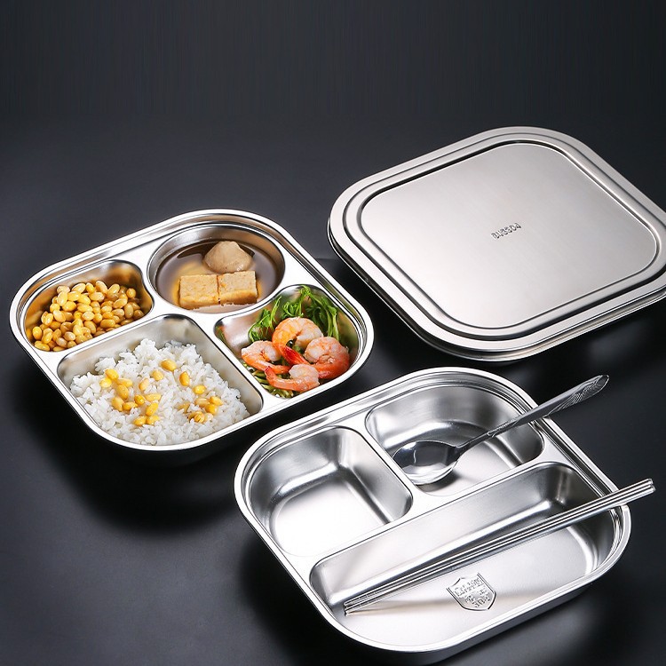 # 학생 및 직원 식당 성인 가정용 분리형 식사 접시 및 그릇을 위한 뚜껑이 있는 304 스테인레스 스틸 분리형 식사 접시스토어 가기