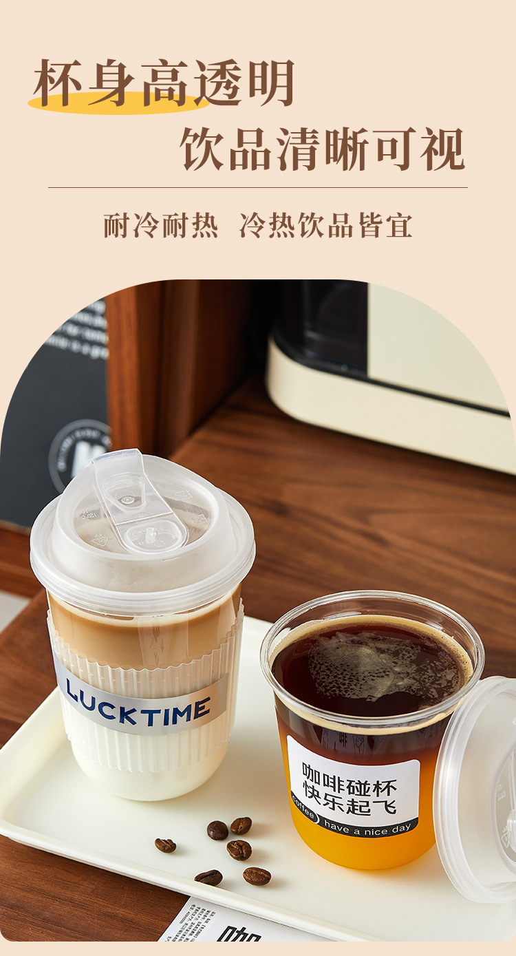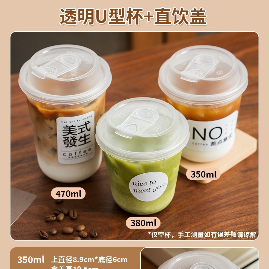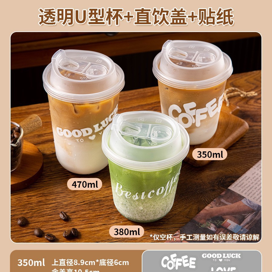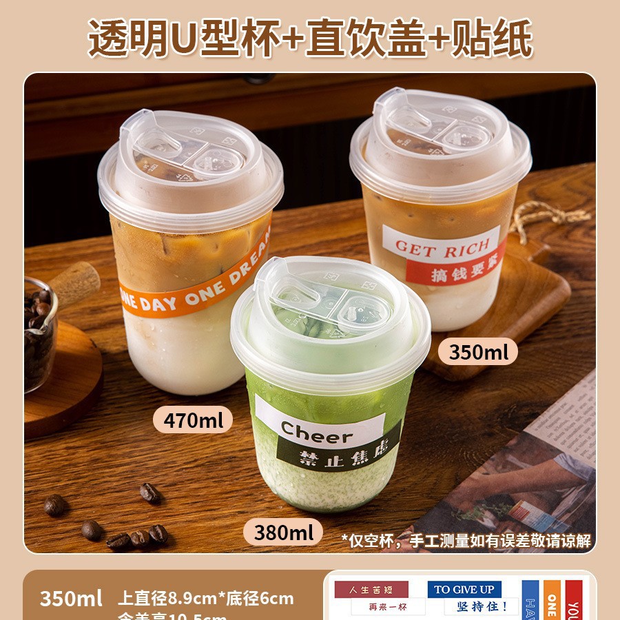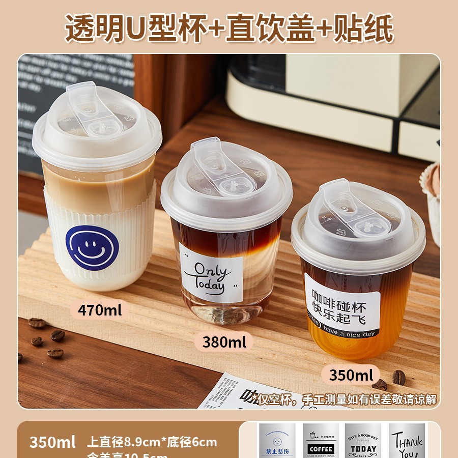 • [투명 아메리카노] U자형 컵 + 직접 마시는 뚜껑 + 스티커