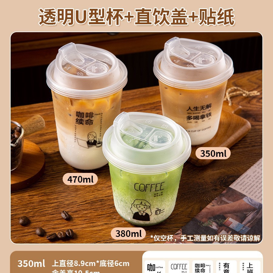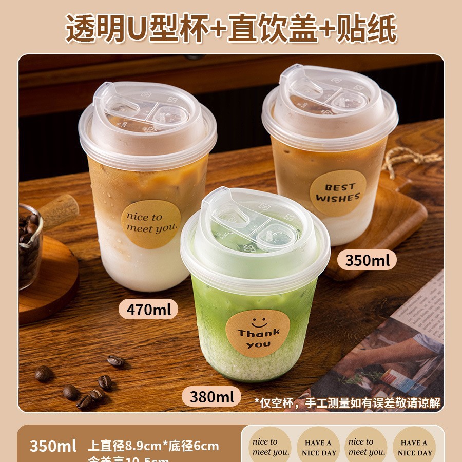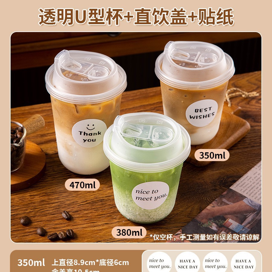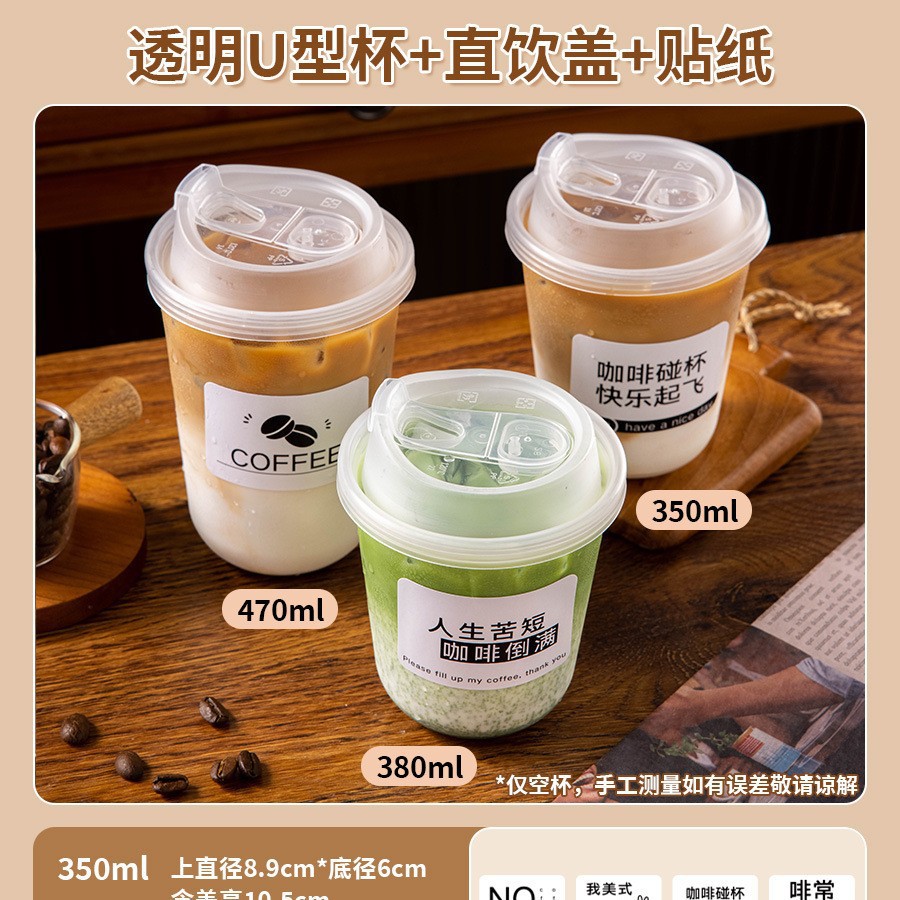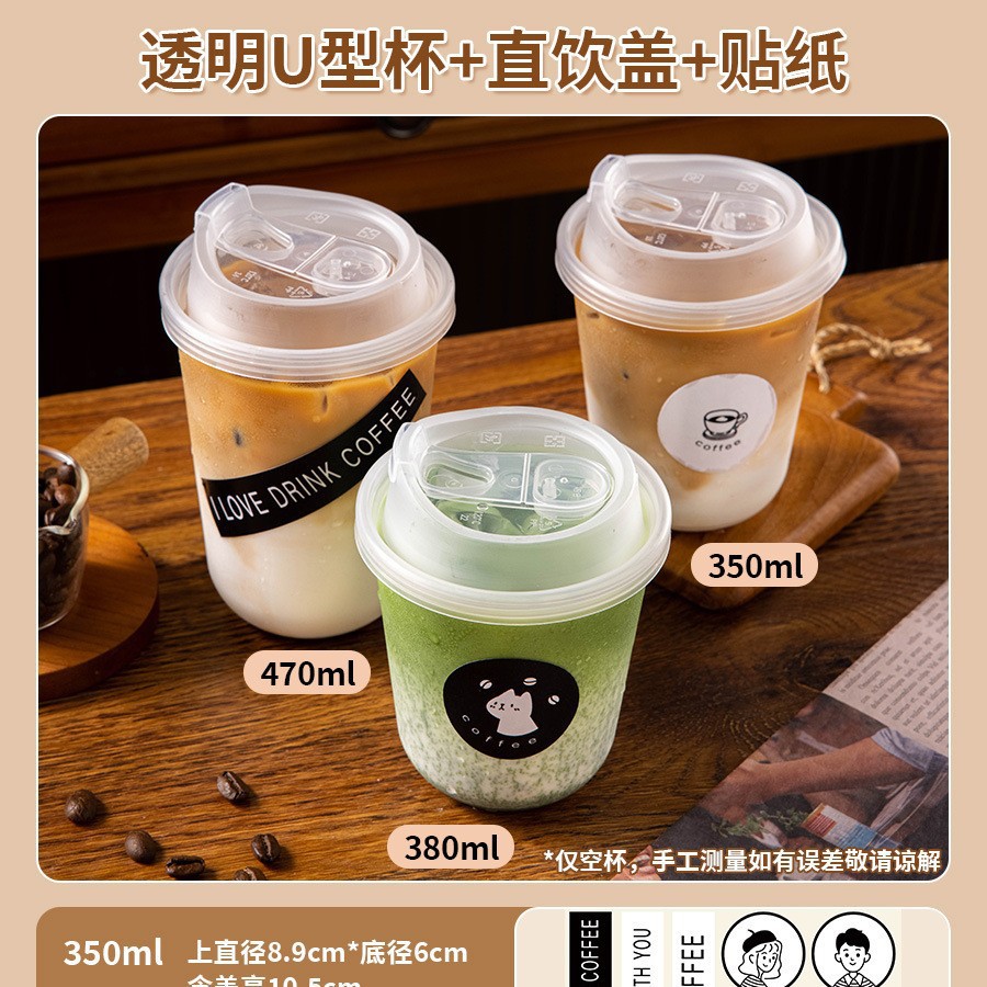 • [투명커피숍] U자형 컵 + 직접 마시는 뚜껑 + 스티커