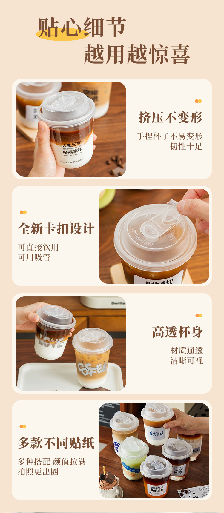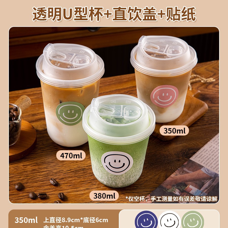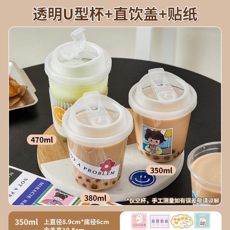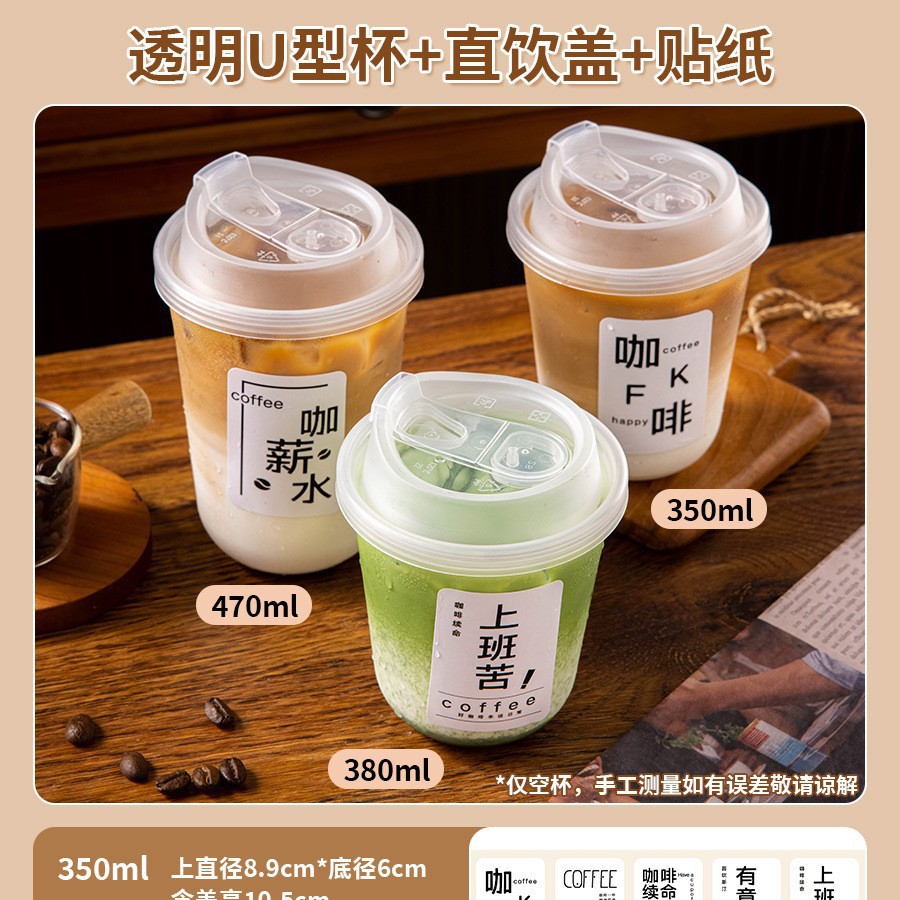 • [투명커피숍] U자형 컵 + 직접 마시는 뚜껑 + 스티커
