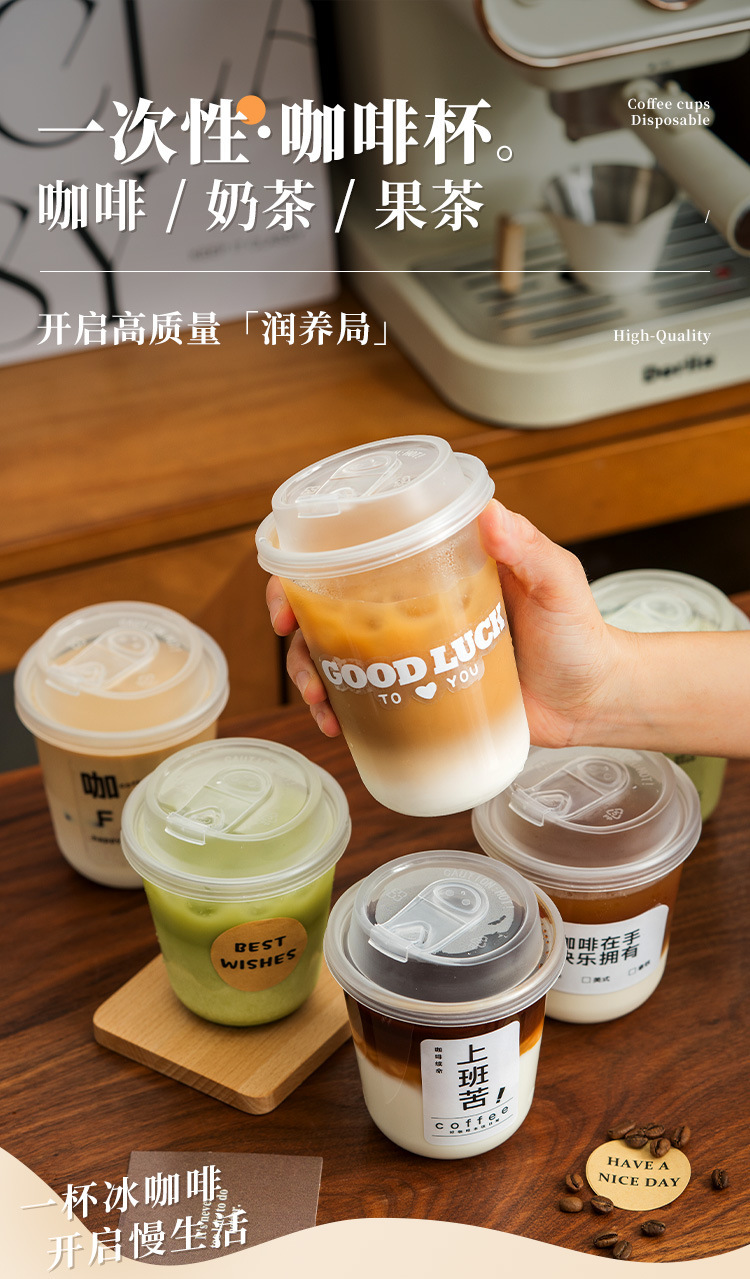 일회용 커피 컵 우유 차 컵 뚜껑 플라스틱 차가운 음료 레몬