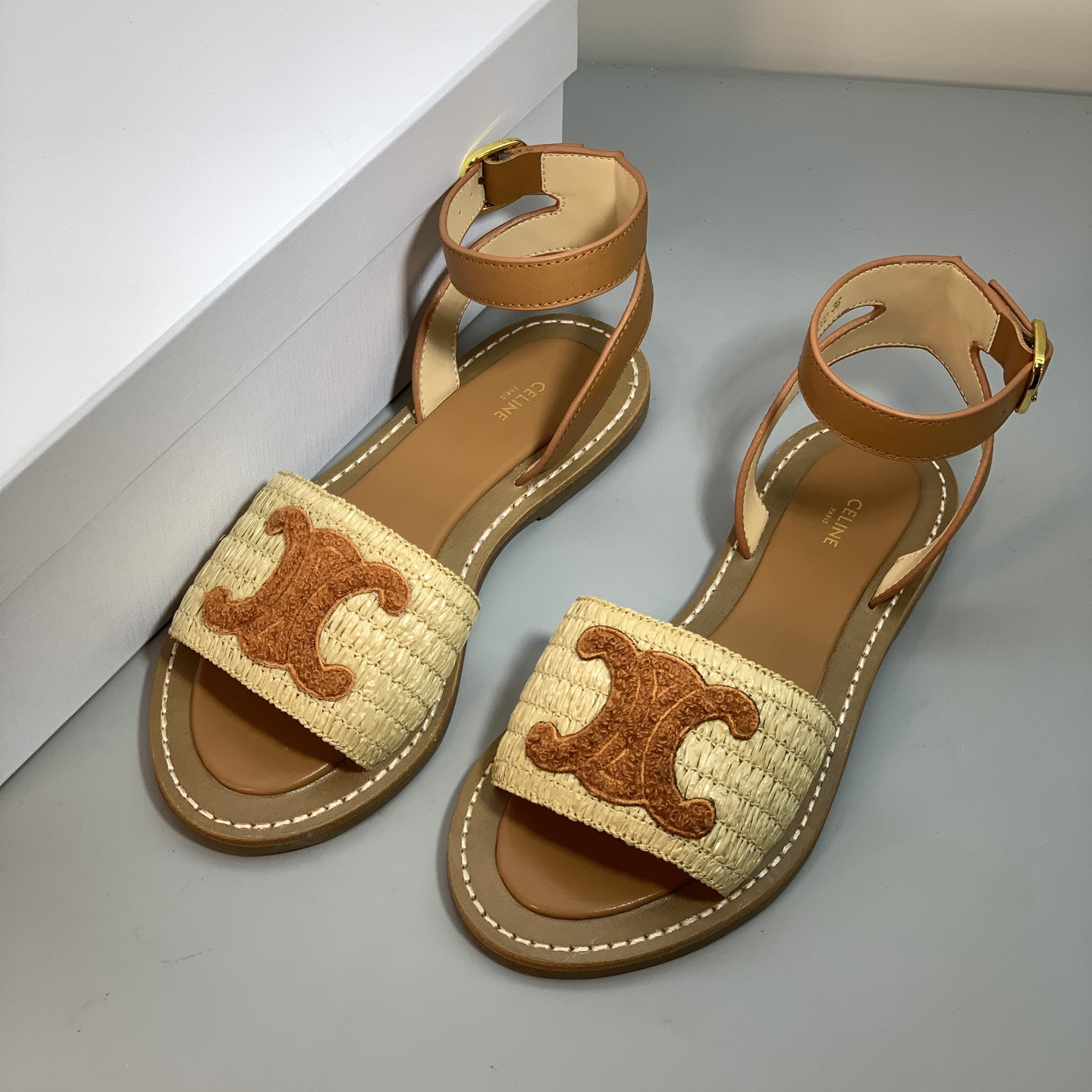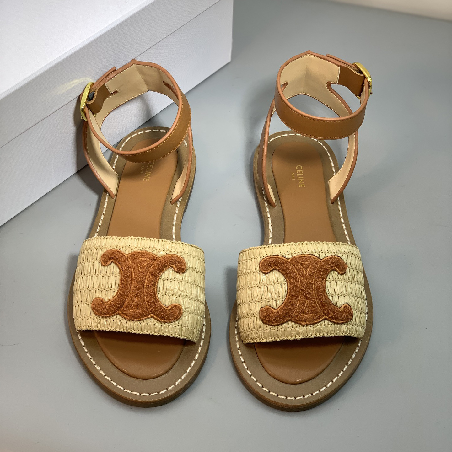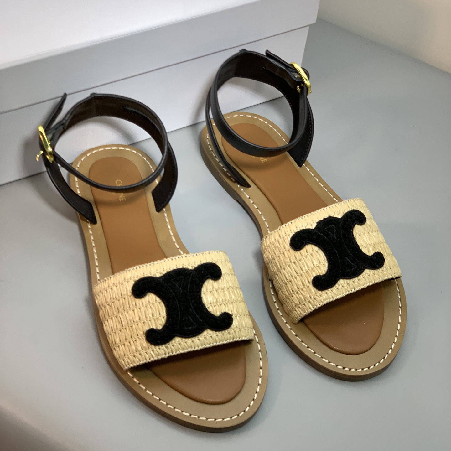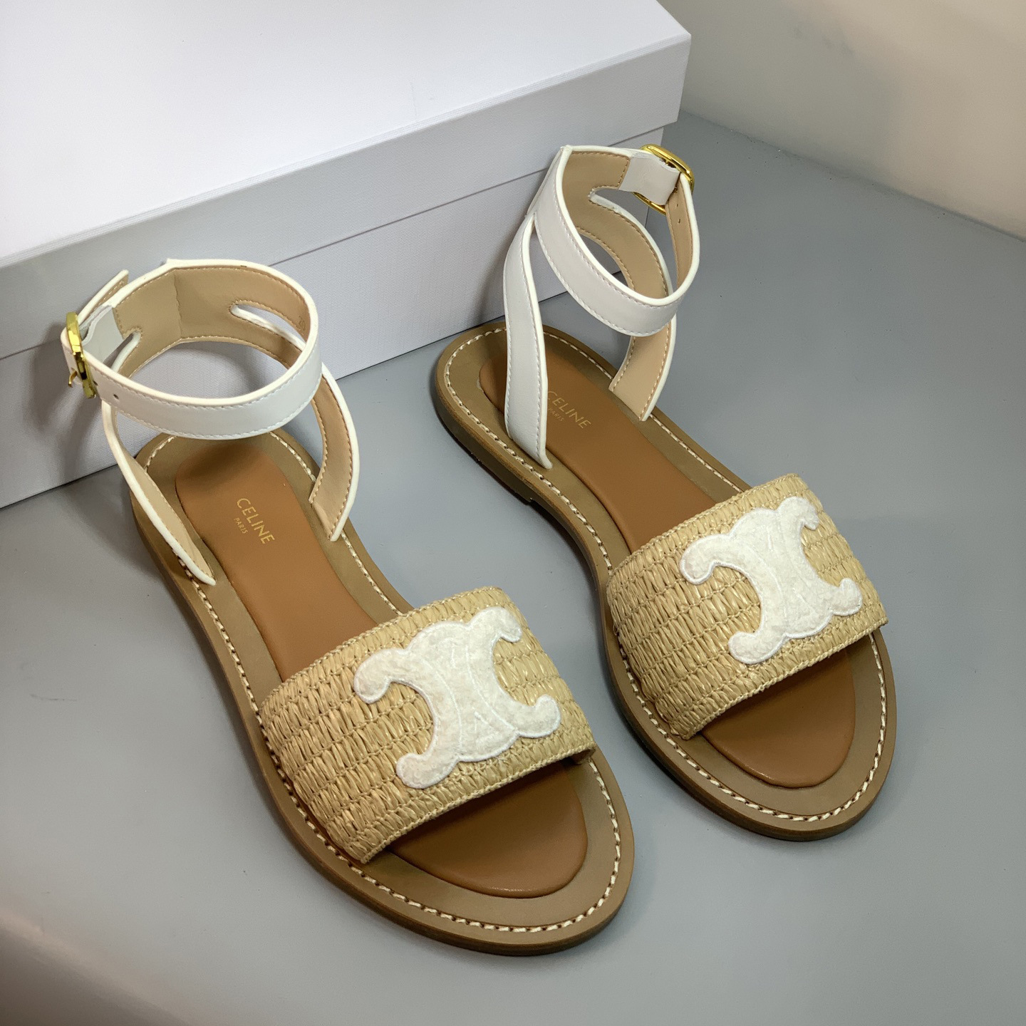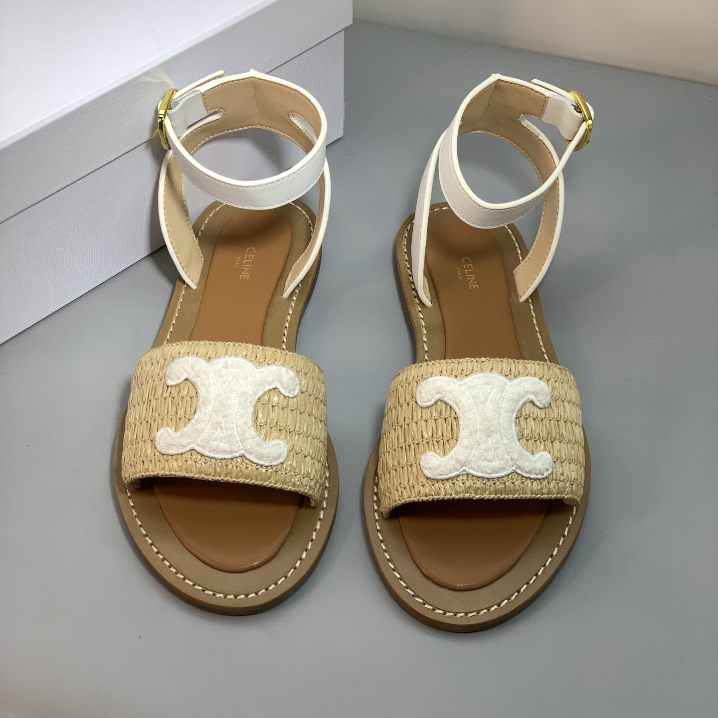 2025 년 여름 개선문 빈티지 아웃웨어 비치 샌들 여성용 짠 래퍼 플랫 스트랩 샌들