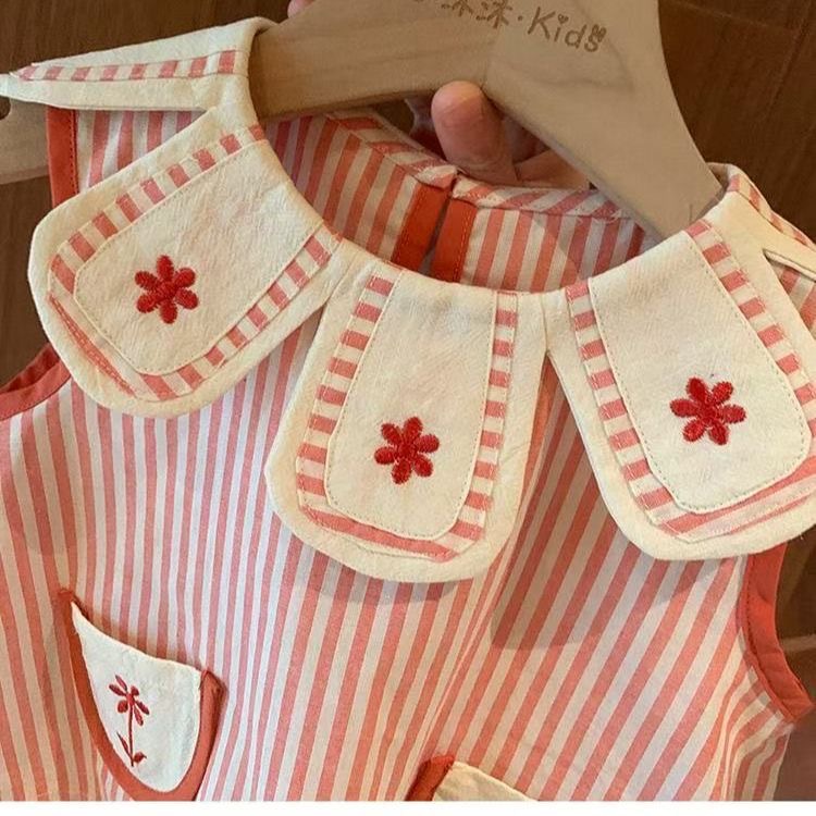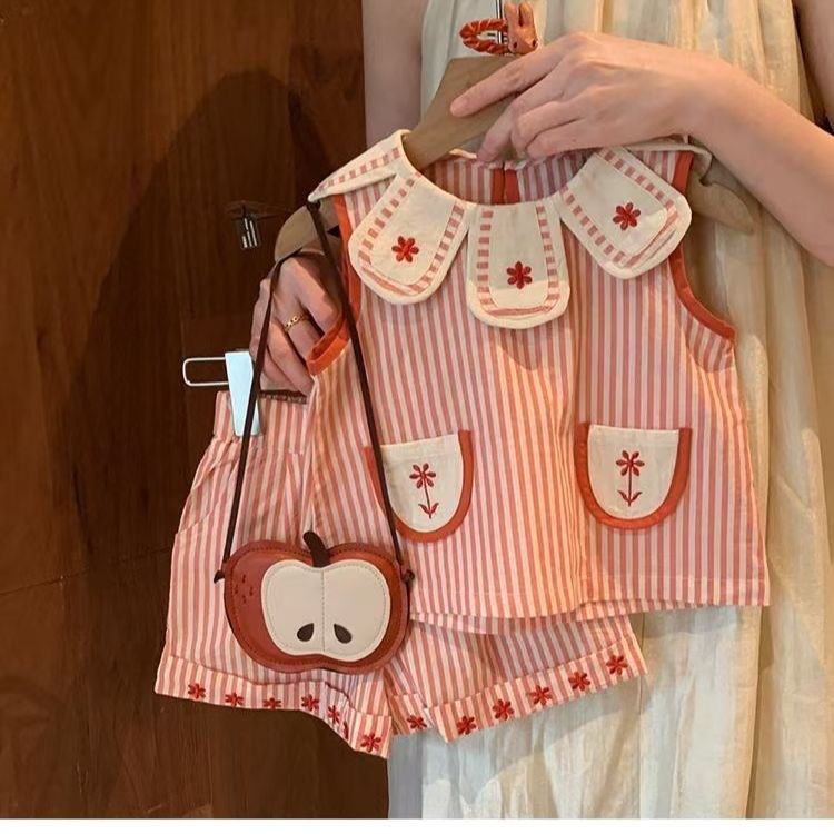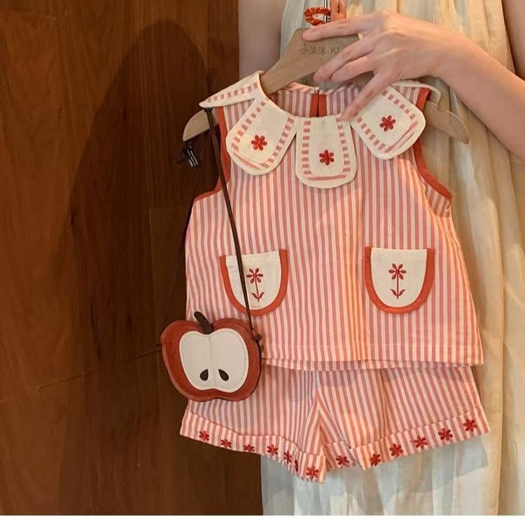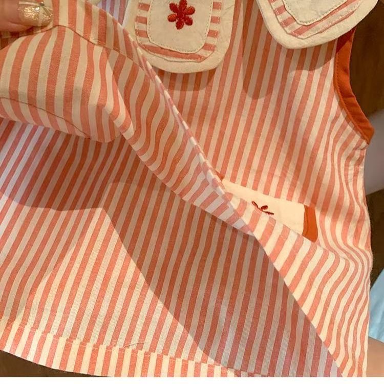 여자 서양식 세트 여름 2025 새로운 스타일 아기 소녀 한국 줄무늬 조끼 반바지 여름 투피스 세트