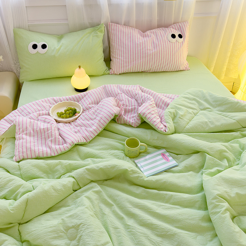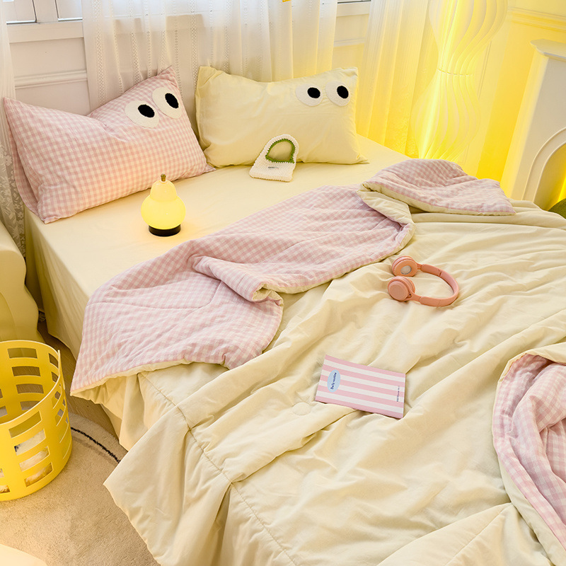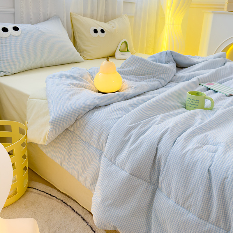 물 씻은 면 여름 이불 에어컨 이불 기계 빨 수있는 얇은 여름 시원한 이불 3 종 세트 여름 단일 기숙사 봄과 가을 이불 코어