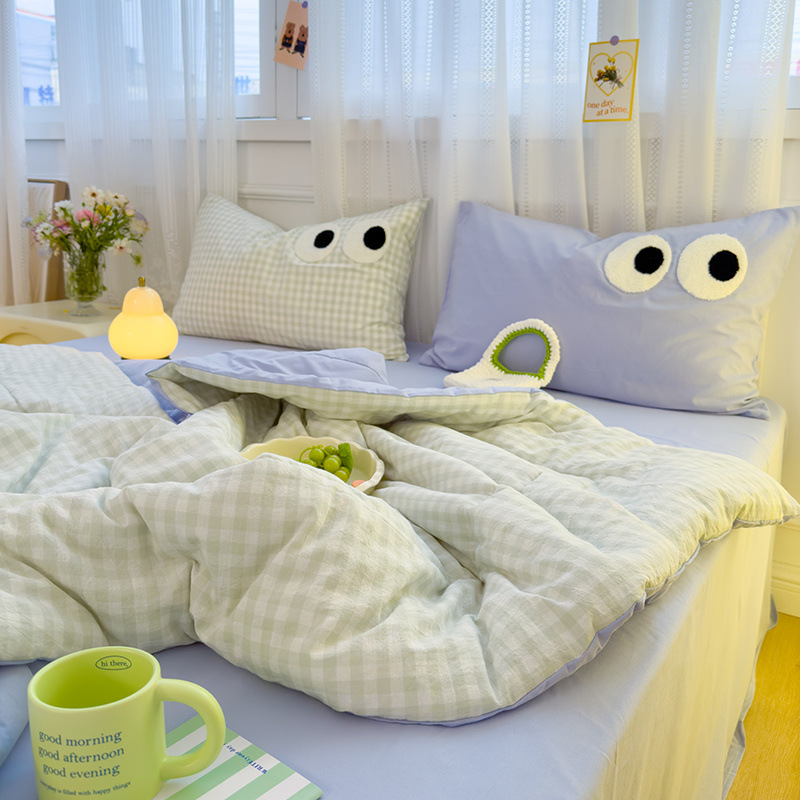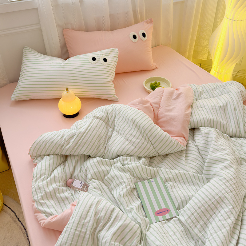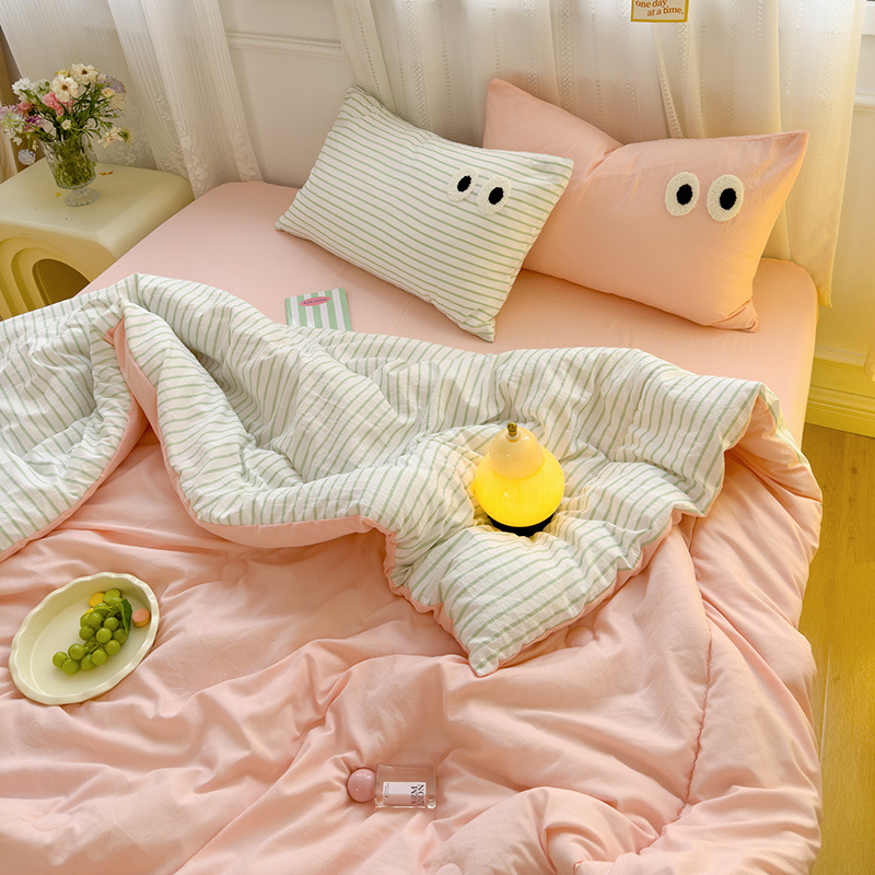 물 씻은 면 여름 이불 에어컨 이불 기계 빨 수있는 얇은 여름 시원한 이불 3 종 세트 여름 단일 기숙사 봄과 가을 이불 코어스토어 가기