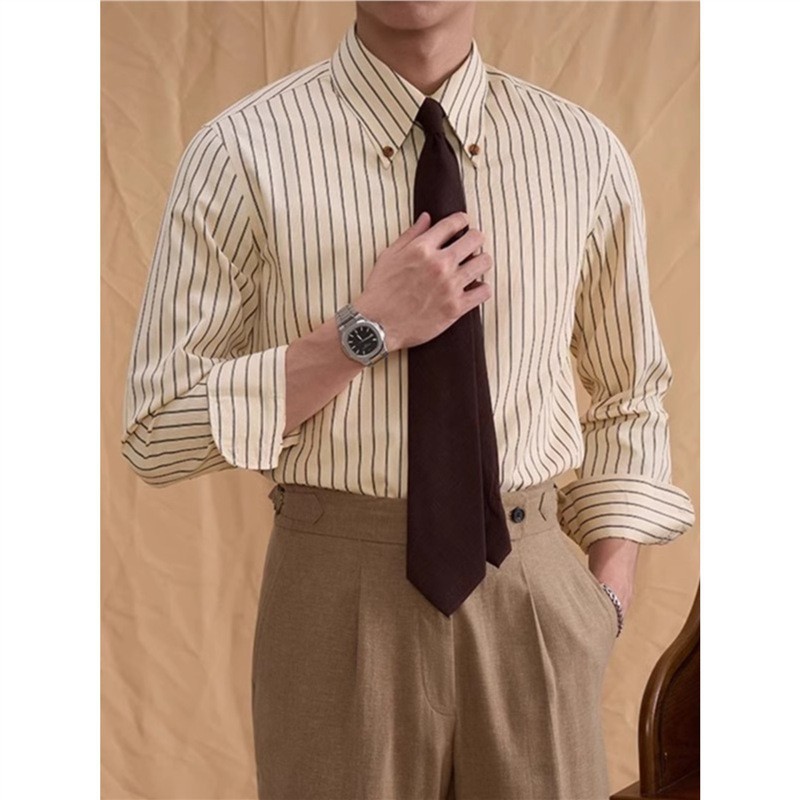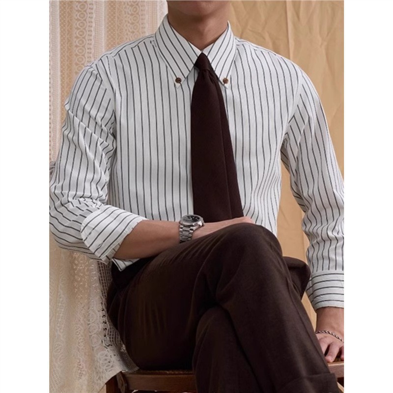 봄과 가을 영국 비즈니스 고급 수직 스트라이프 남자의 대형 포인트 칼라 셔츠 하이 엔드 긴팔 비 다림질 주름 셔츠스토어 가기