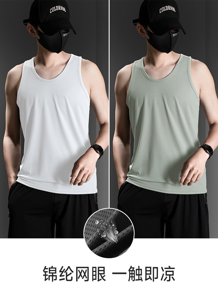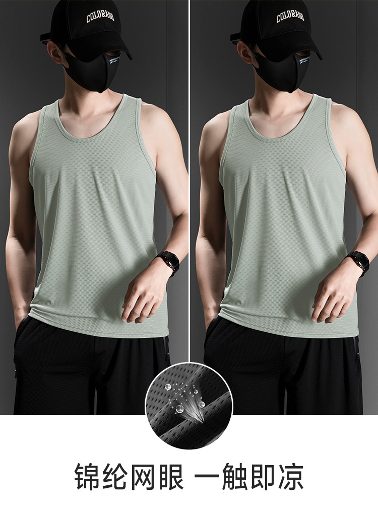 조끼 남성 여름 얇은 플러스 지방 플러스 사이즈 겉옷 피트니스 양복 조끼 느슨한 속건성 시원한 얼음 실크 바닥 셔츠