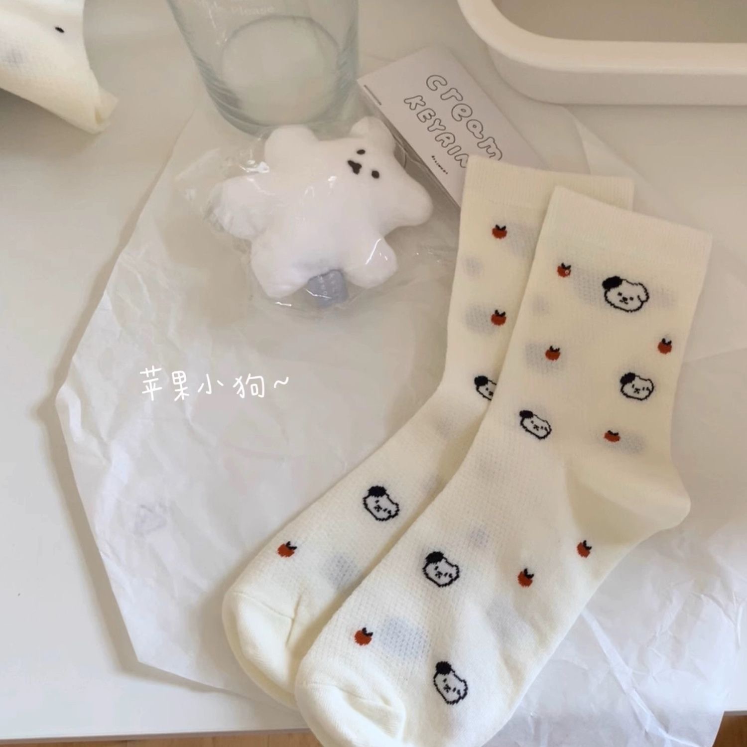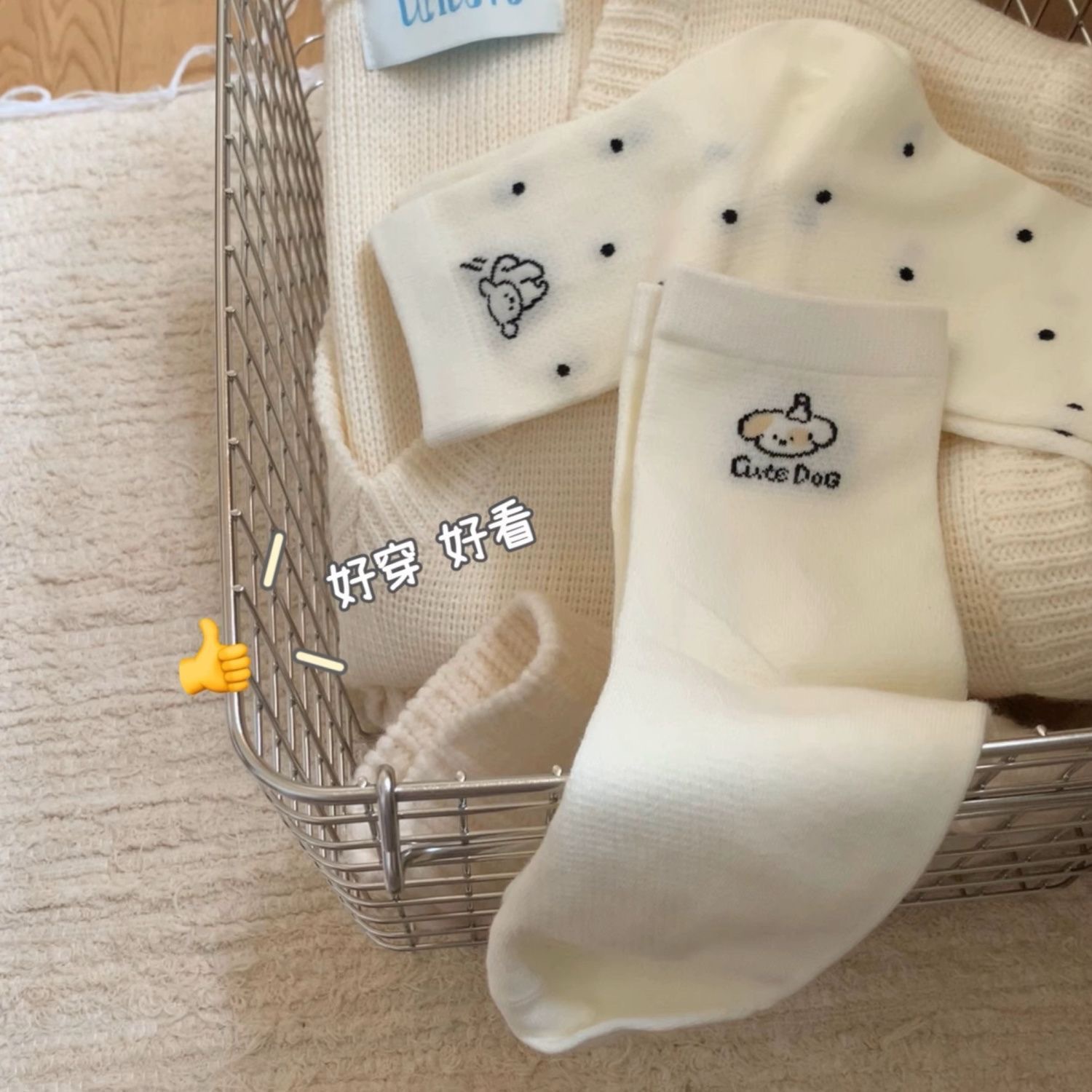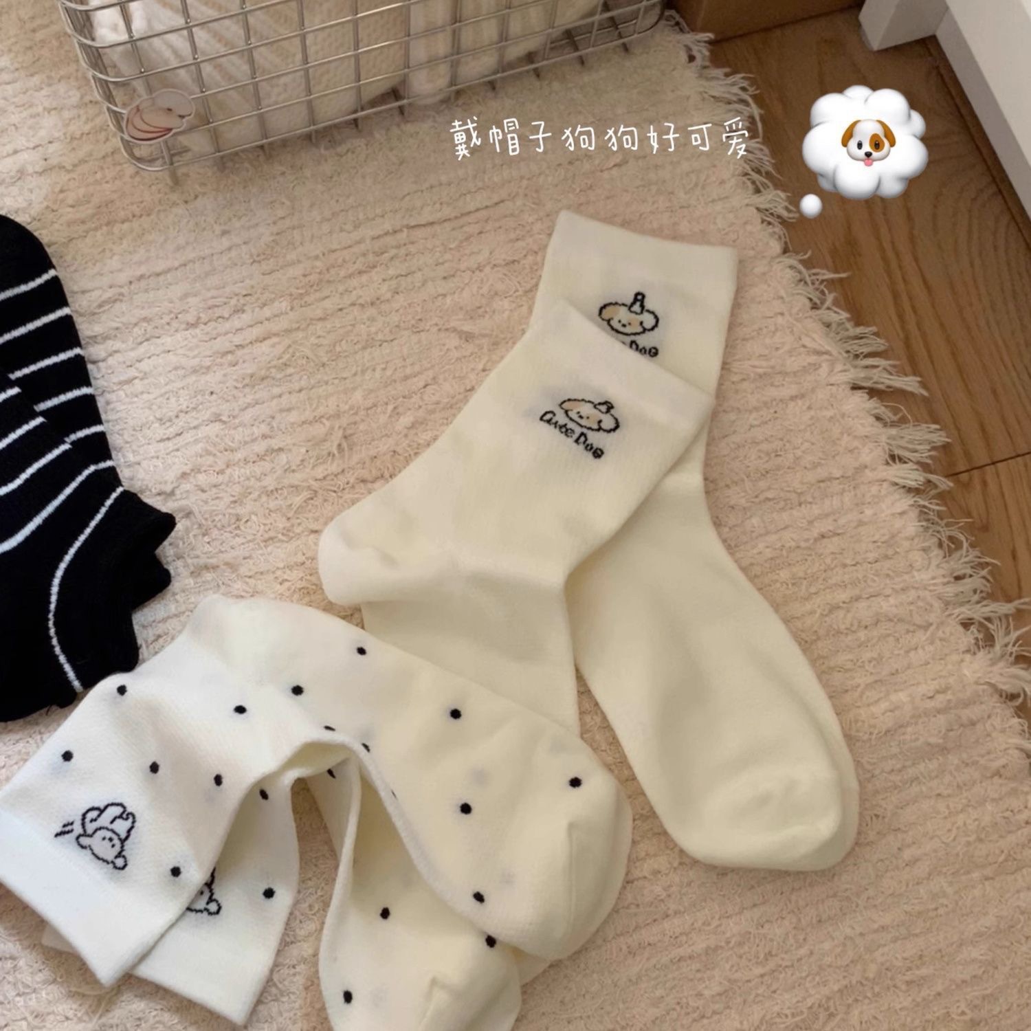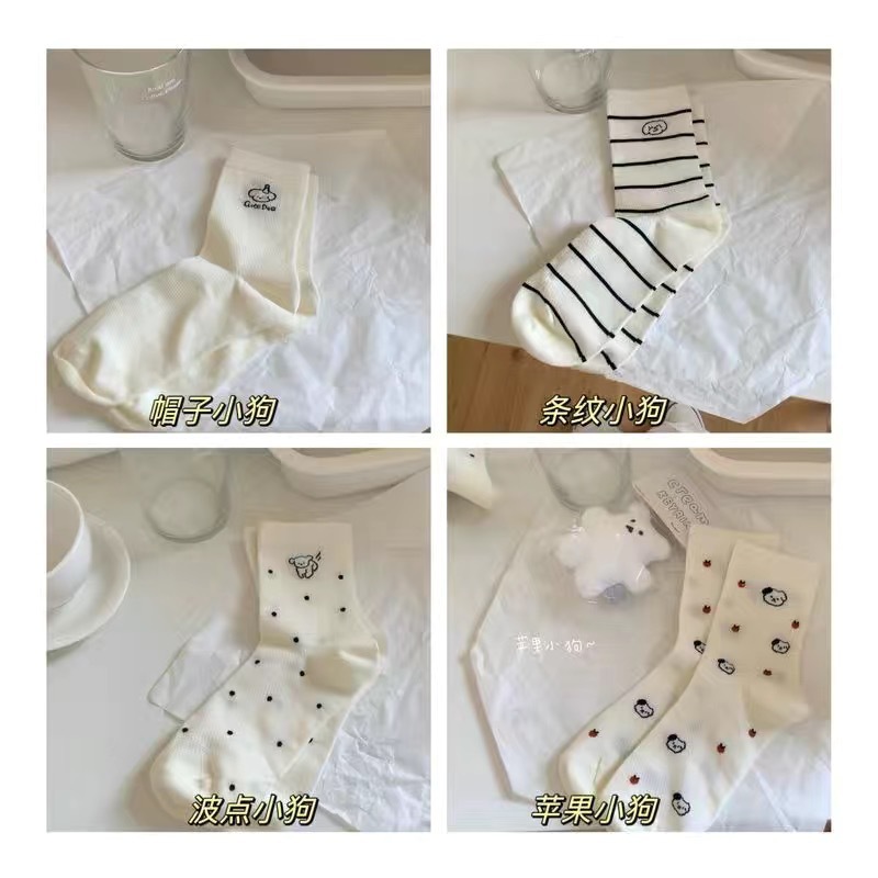 (통기성 메쉬~ 귀여운 강아지! ) 여름 줄무늬 폴카 도트 얇은 귀여운 중간 튜브 양말 흰색 ins 여성 양말스토어 가기
