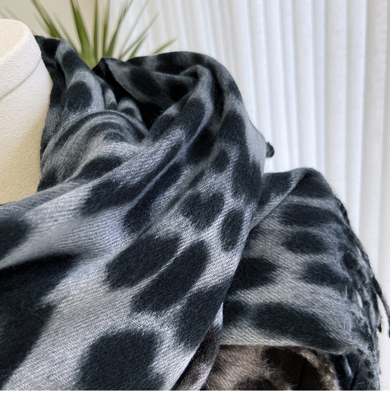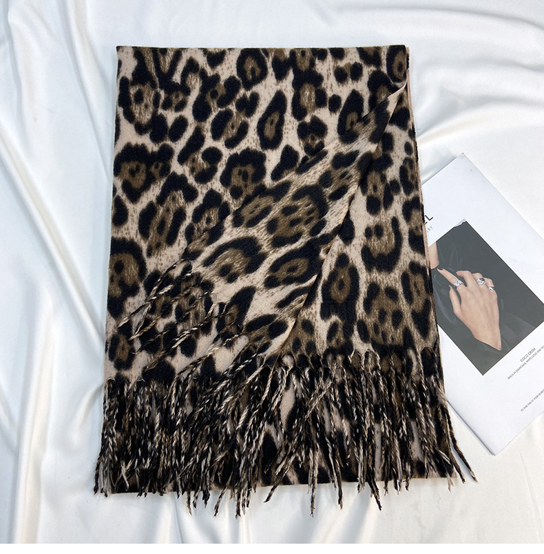 레오파드 프린트 스카프 여성 가을, 겨울 클래식 두꺼운 캐시미어 프린트 프린지 숄 유럽과 미국의 다용도 따뜻한 스카프