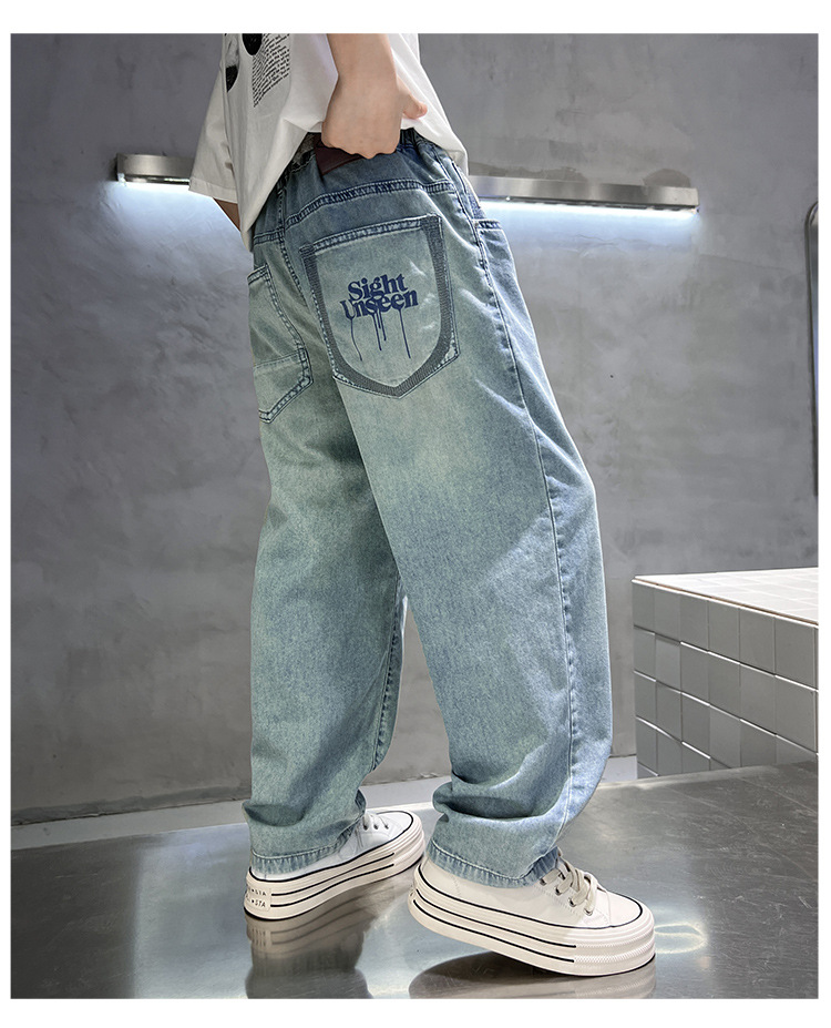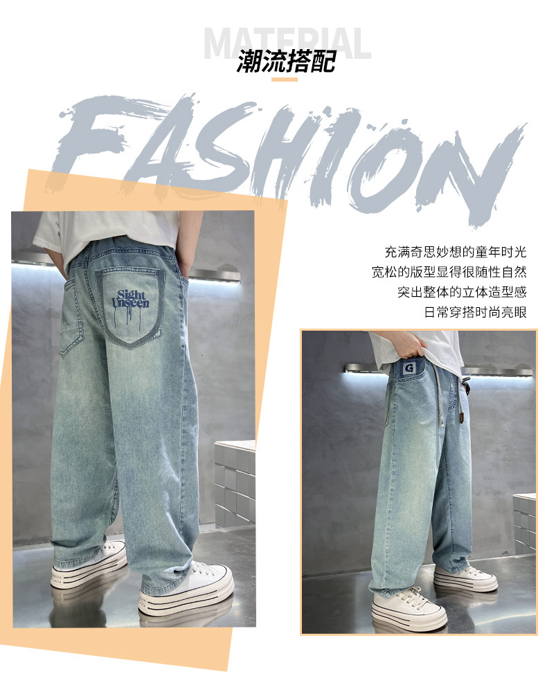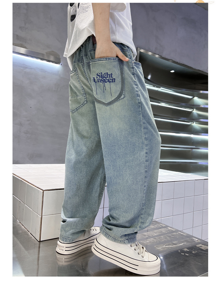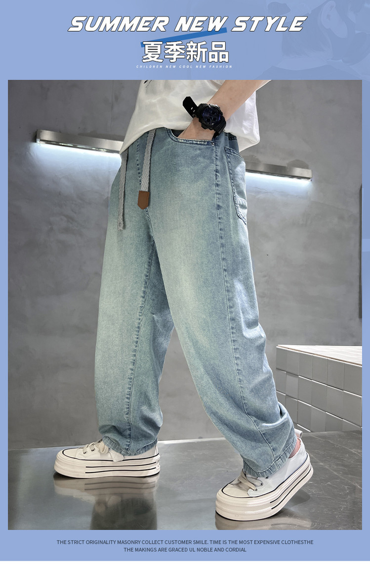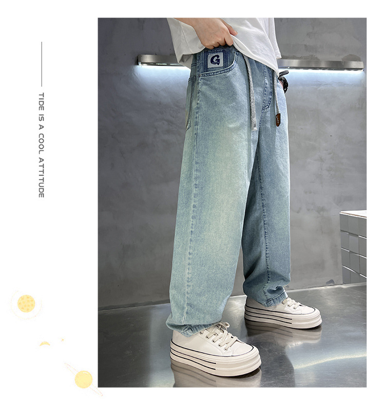 아동복 소년 여름 얇은 바지 2025 새로운 어린이 느슨한 청바지 한국 스타일 더피 잘 생긴 소년 긴 바지