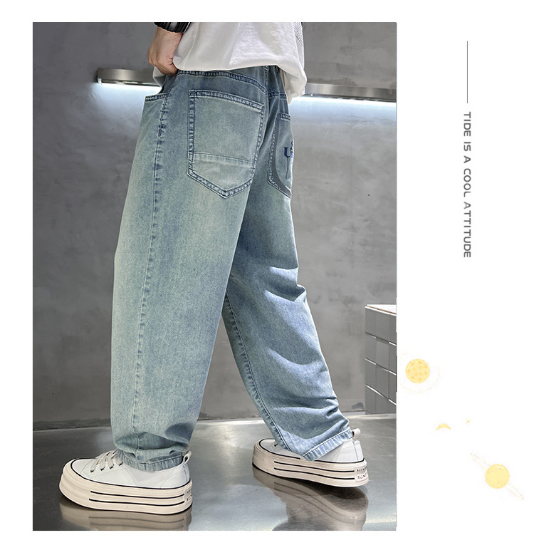 아동복 소년 여름 얇은 바지 2025 새로운 어린이 느슨한 청바지 한국 스타일 더피 잘 생긴 소년 긴 바지스토어 가기