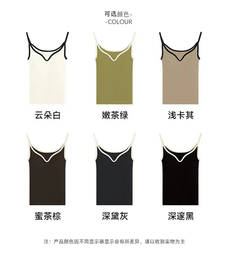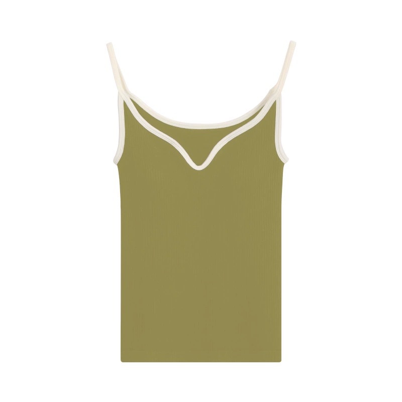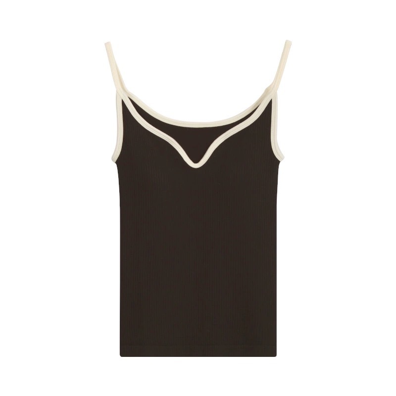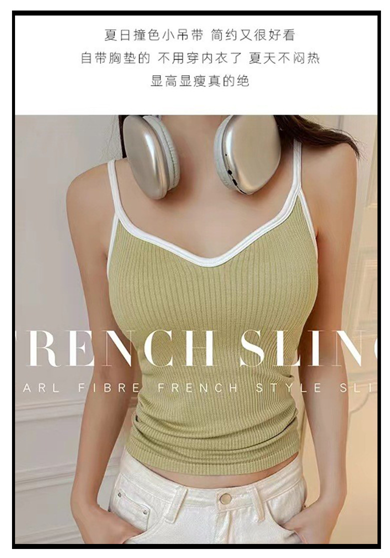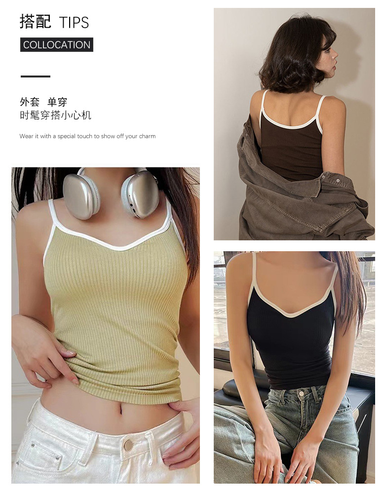 GOOD FA 봄 여름 배색 갈매기 타이 가슴 패드와 캐미솔 여성용 베이스 레이어로 밖에서도 착용 가능 여성용 상의