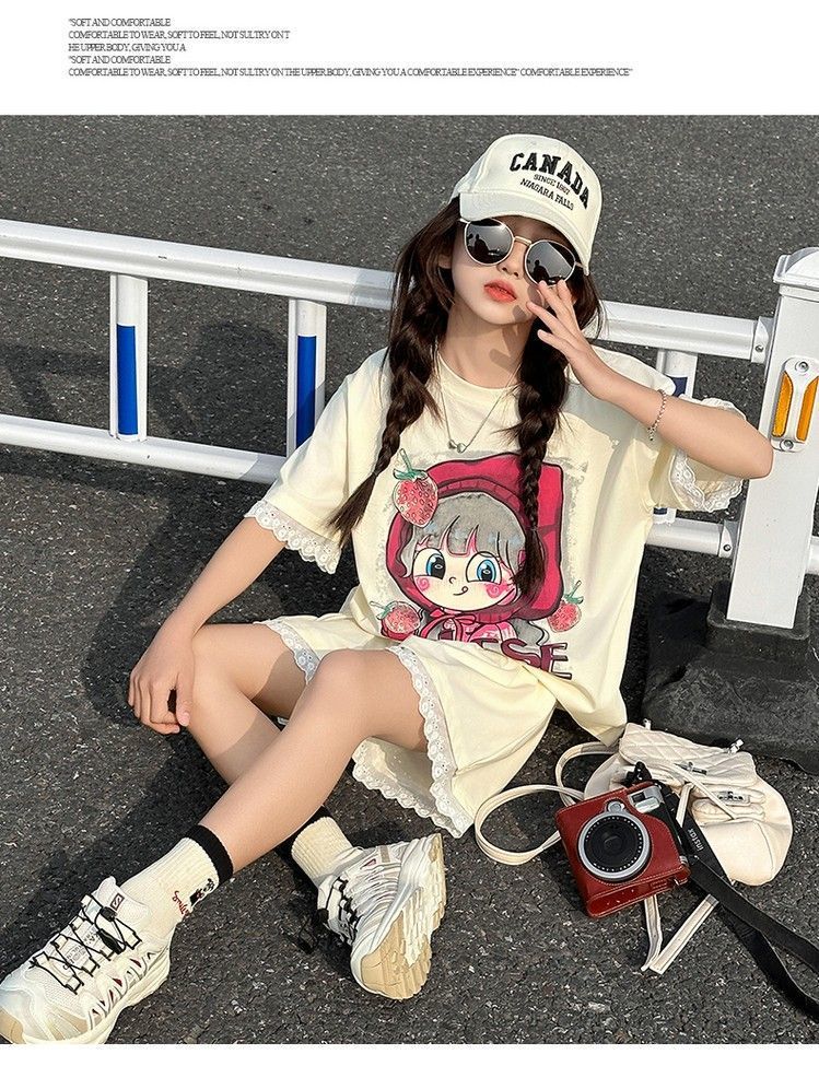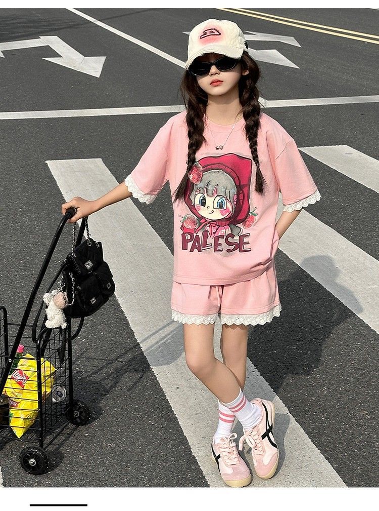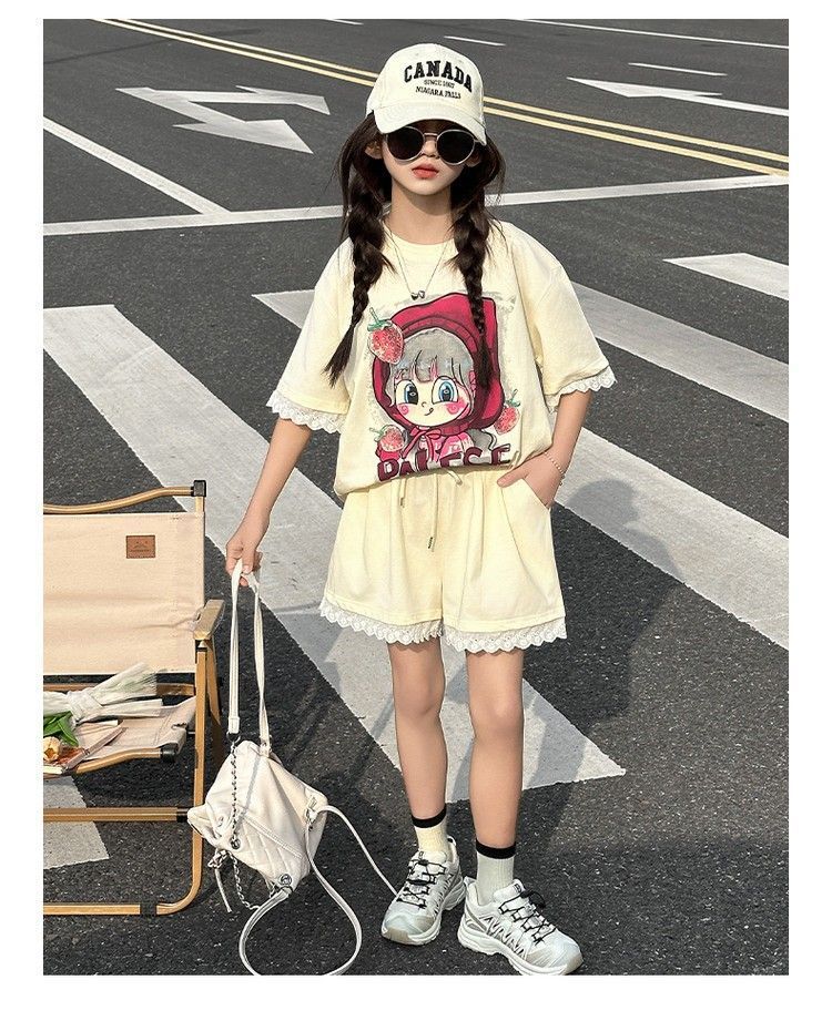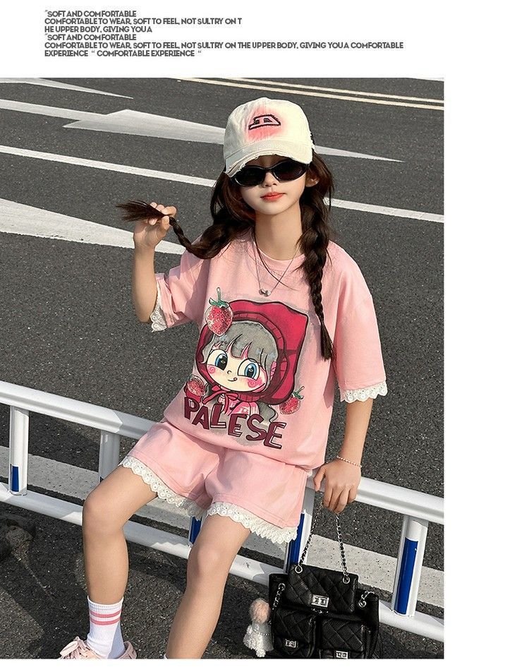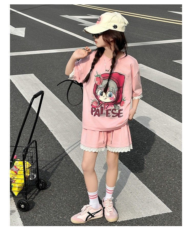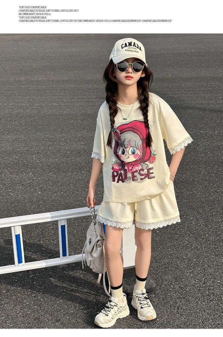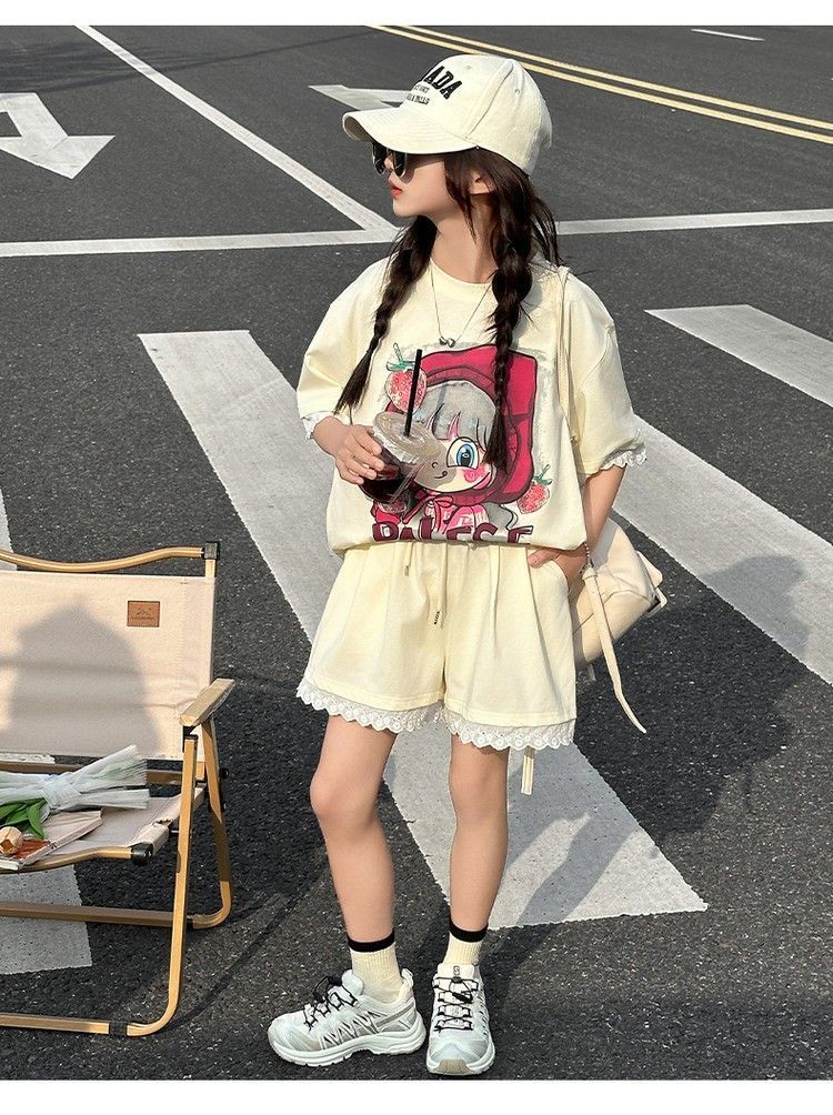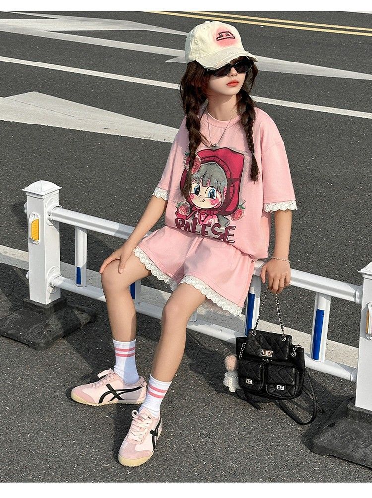 여자 여름 세트 2025 새로운 여자 한국 스타일 웨스턴 스타일 레이스 짧은 소매 반바지 투피스 세트스토어 가기