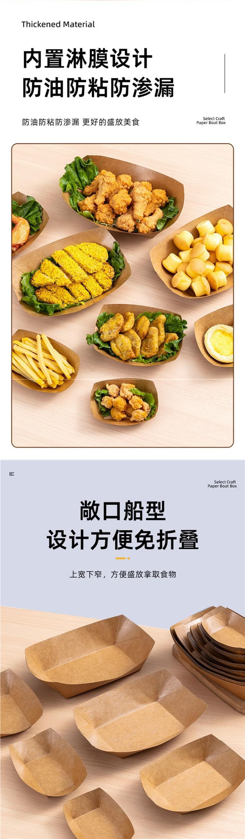 일회용 크래프트 종이 보트 상자 상업용 스낵 감자 튀김 꼬치 바베큐 오픈 트레이 튀김 치킨 보트 모양 포장 상자