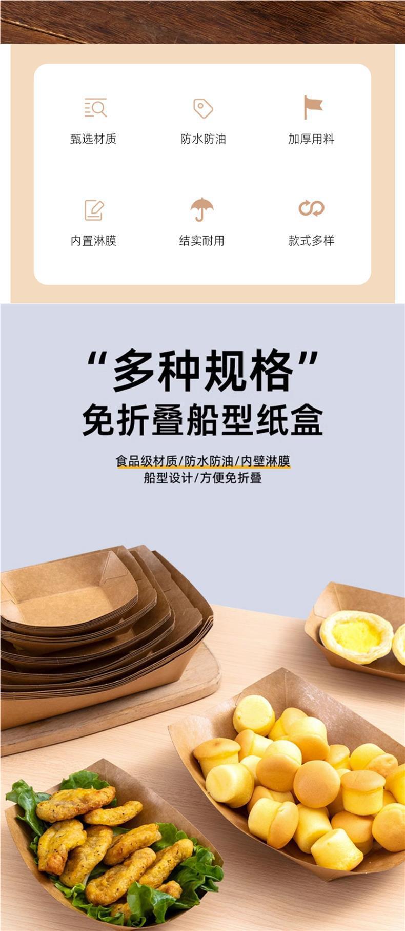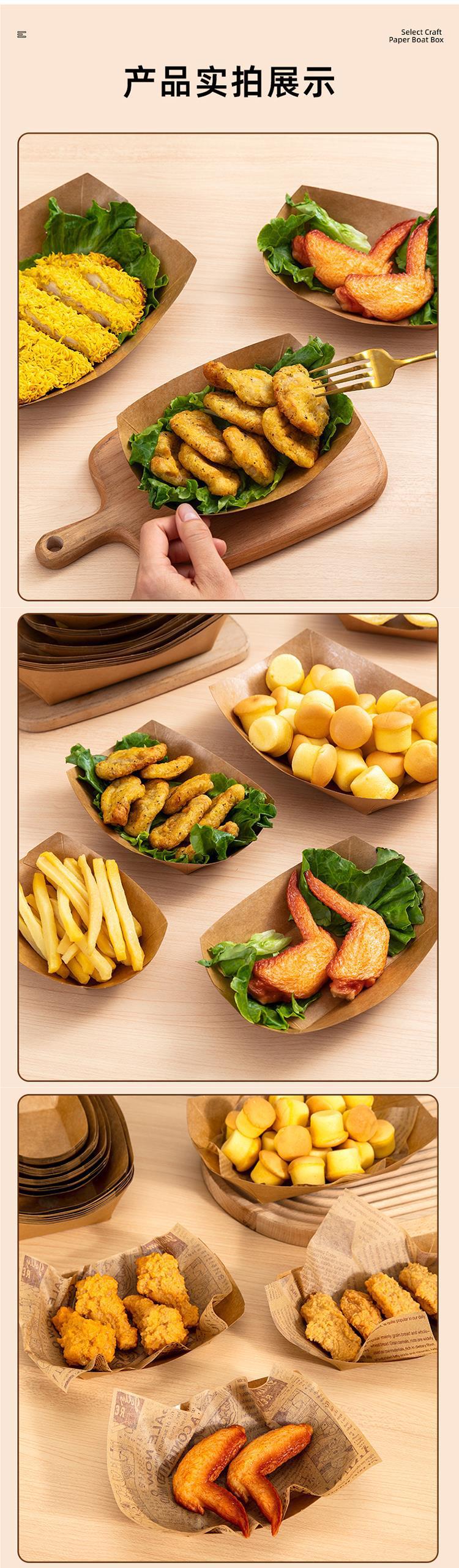 일회용 크래프트 종이 보트 상자 상업용 스낵 감자 튀김 꼬치 바베큐 오픈 트레이 튀김 치킨 보트 모양 포장 상자스토어 가기