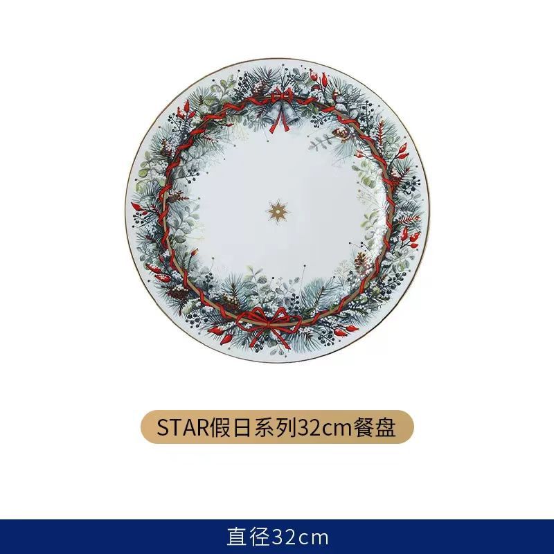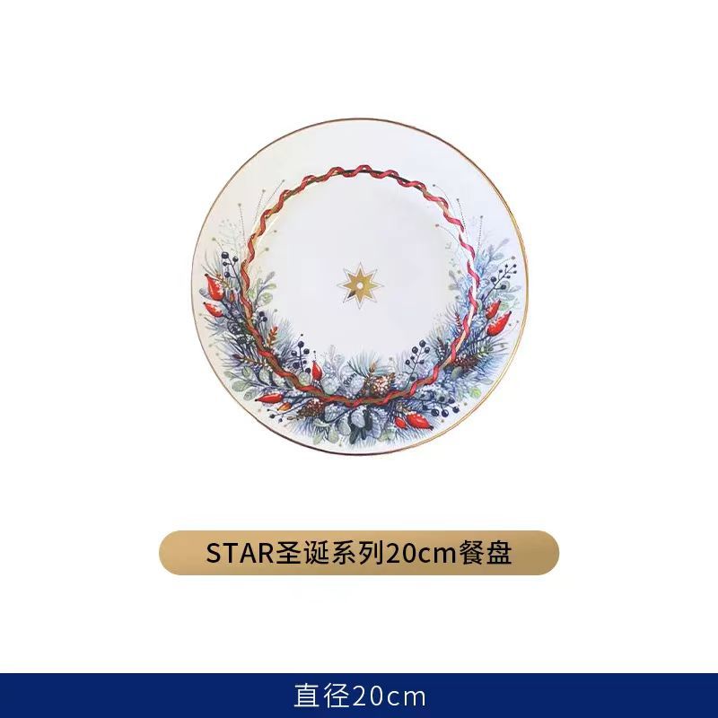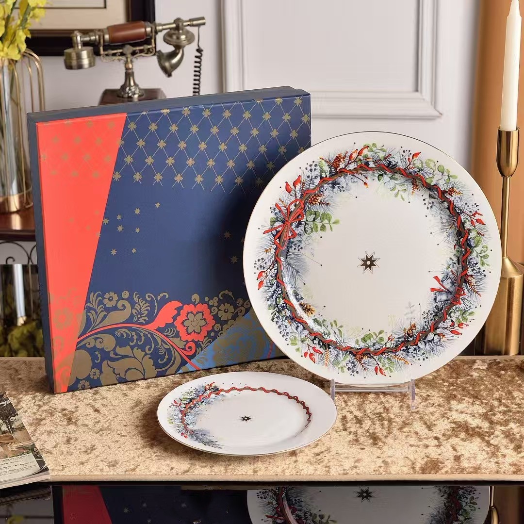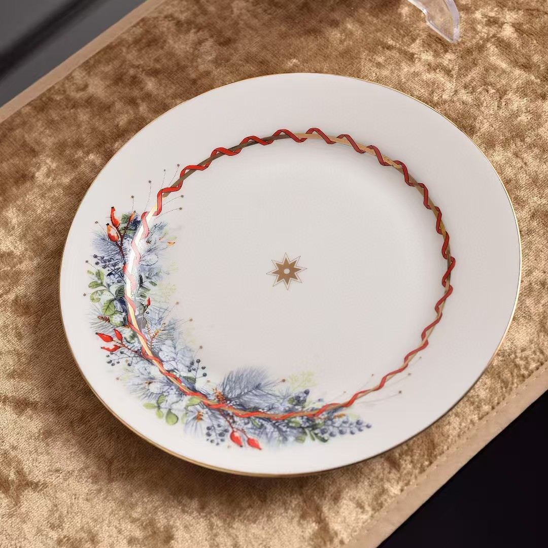 크리스마스 새해 본차이나 금도금 세라믹 디너 플레이트 크고 작은 접시 세트 골드 럭셔리 스테이크 플레이트 10inch 접시 시리즈스토어 가기