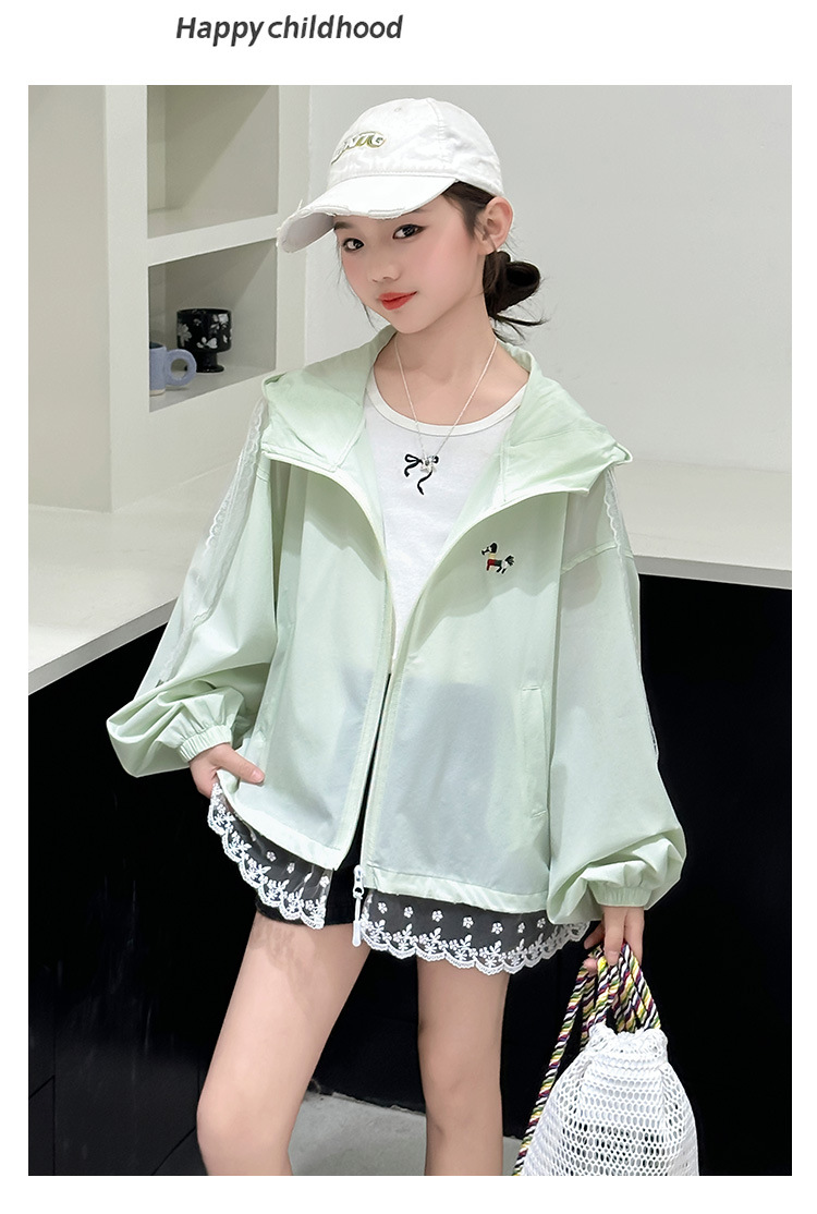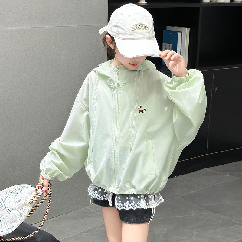 어린이 야외 후드 아이스 실크 선 스크린 의류 소녀 선 스크린 의류 경량 재킷 2025 새로운 스타일 여름 패션