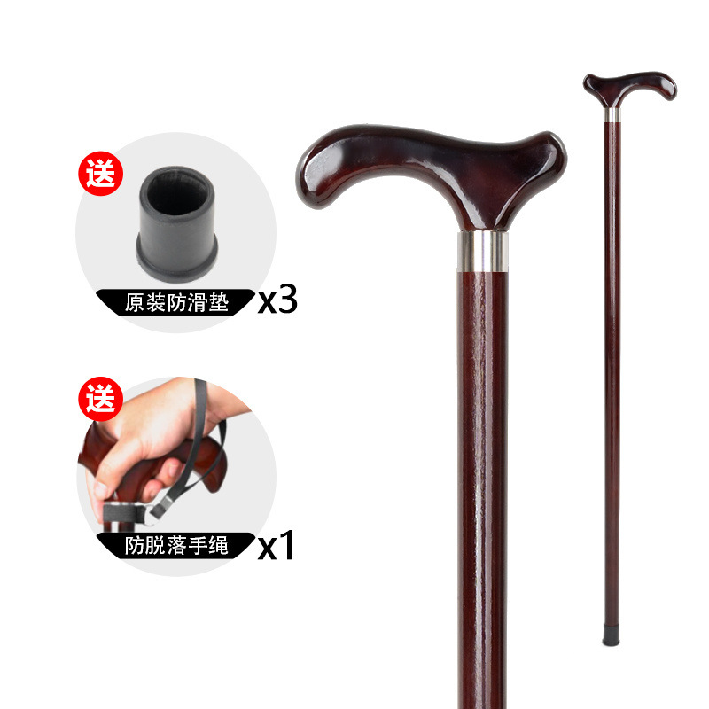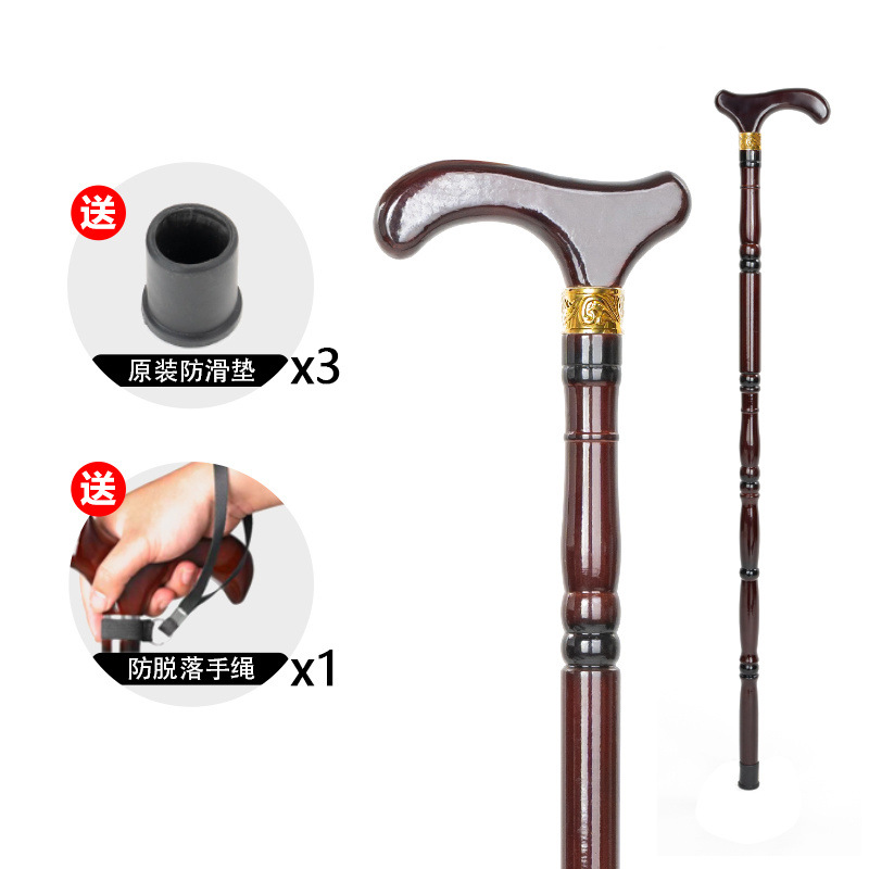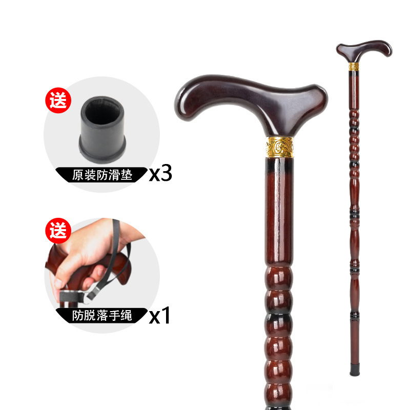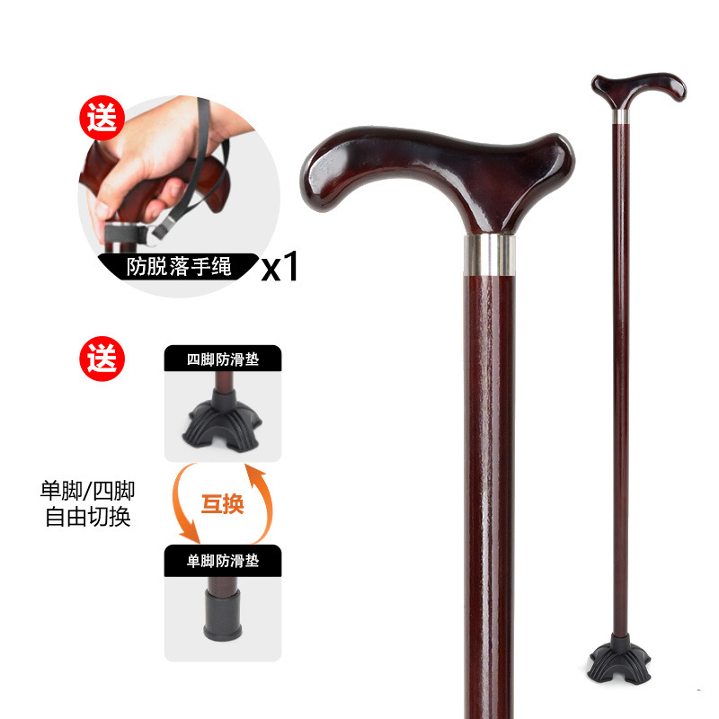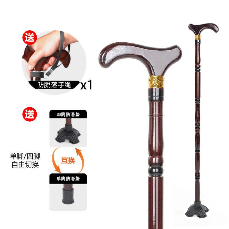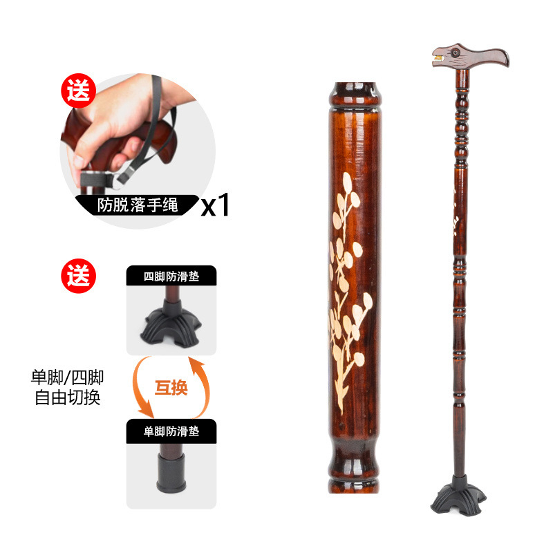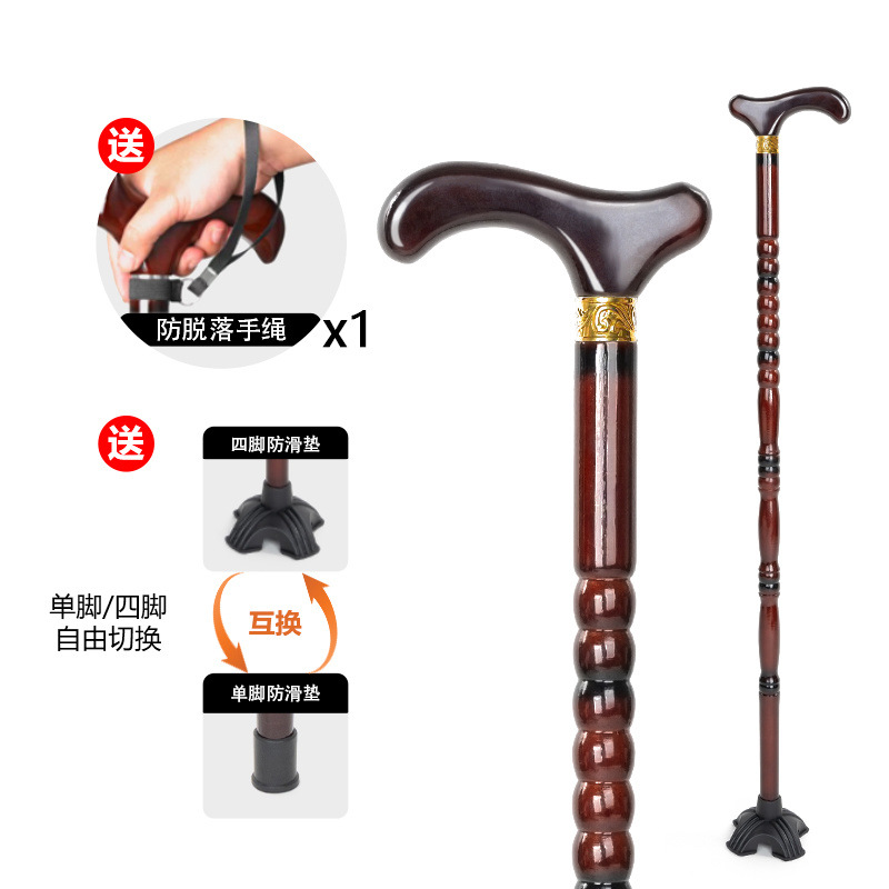 노인용 미끄럼 방지 원목 지팡이, 노인용 수도꼭지 지팡이, 경량 목재 4발 낙하 방지 등산 보행 보조기