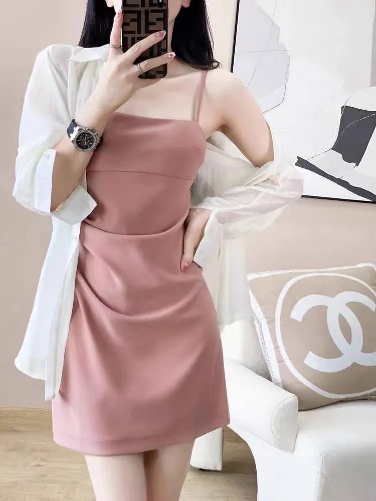 작은 신작 2025 서스펜더 플리츠 드레스, 허리 슬리밍, 고급스럽고 우아한, 순수한 욕망 스타일의 짧은 스커트스토어 가기