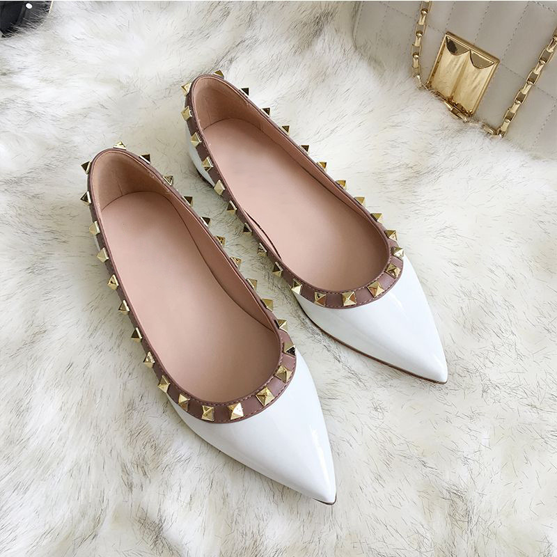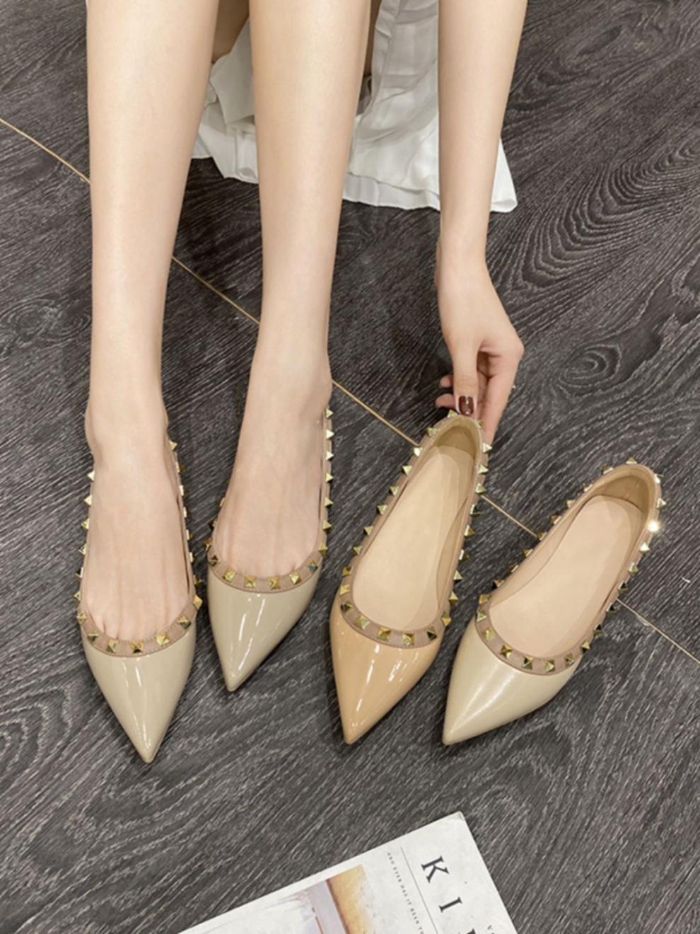 [매장 핫셀링] 리벳 플랫슈즈 2025 봄 가을 신상 포인티드 토 소프트솔 얕은 입 플랫슈즈 버드나무 스타일