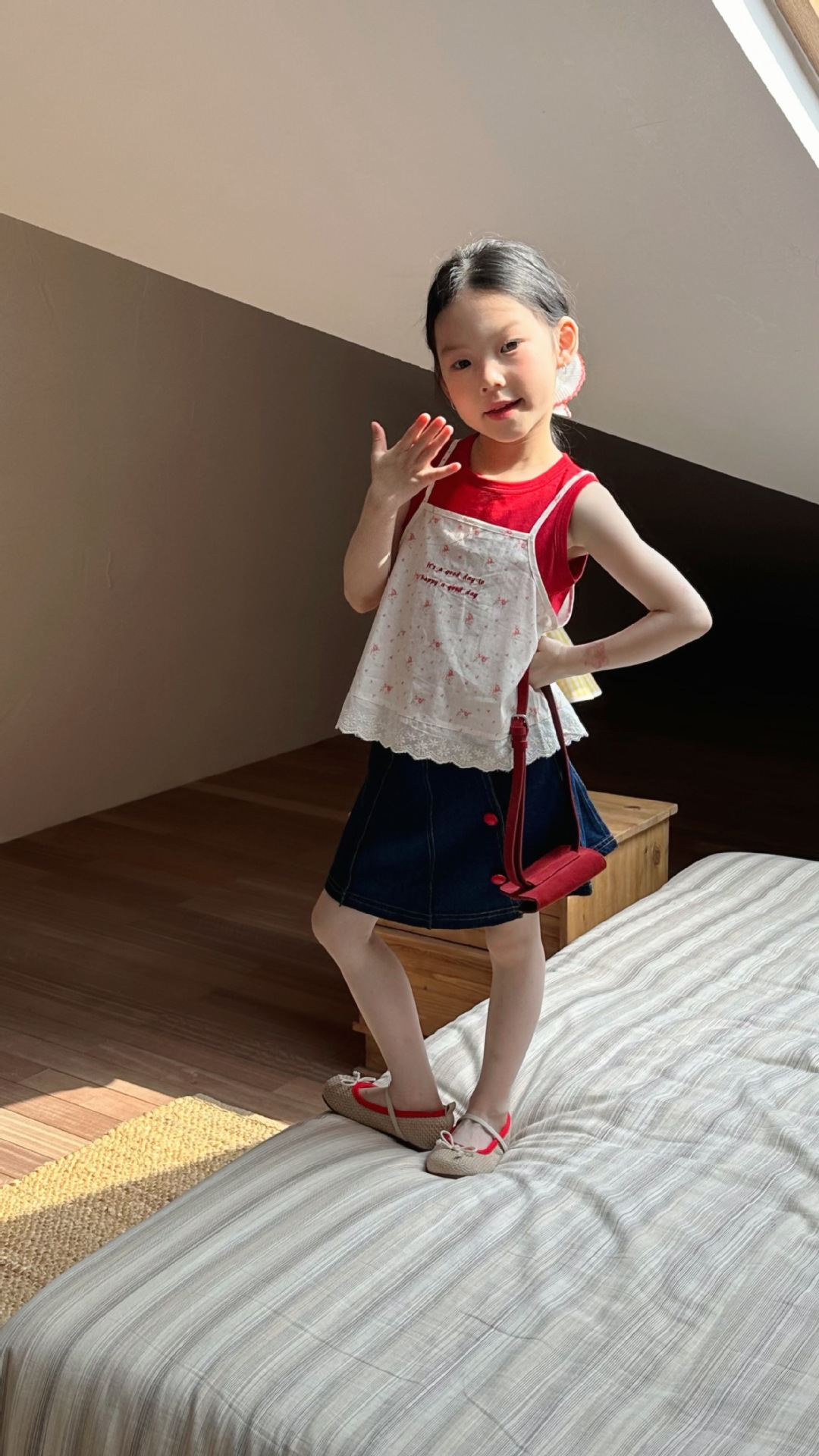 2025 년 여름 새 아동복 한국 아동복 소녀 꽃 슬링 민소매 티셔츠 2 피스 세트 여름스토어 가기