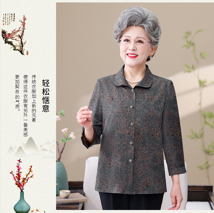 노인 할머니의 여름 셔츠 어머니의 여름 셔츠 60 세 70 세 레이디 나인 소매 노인 옷스토어 가기