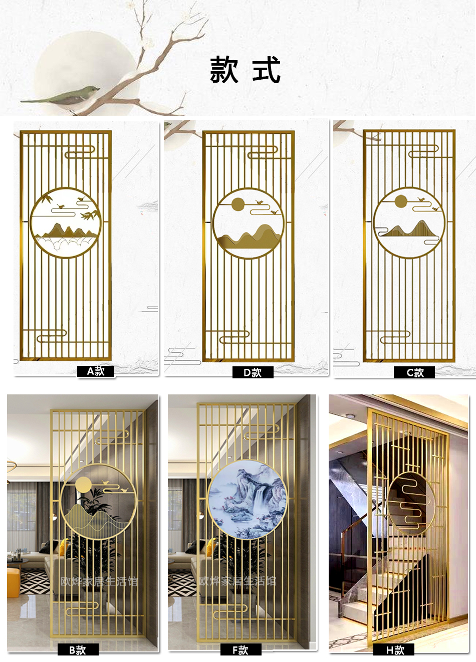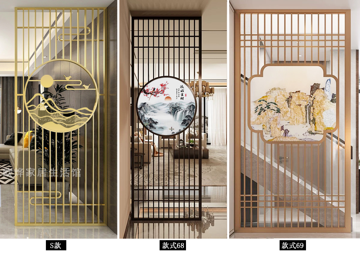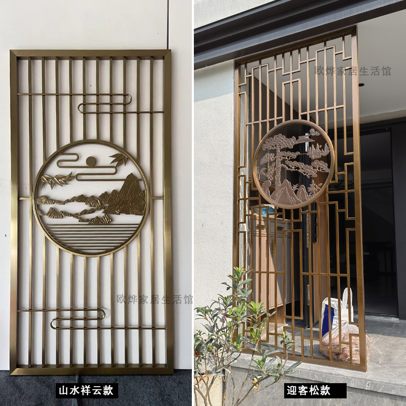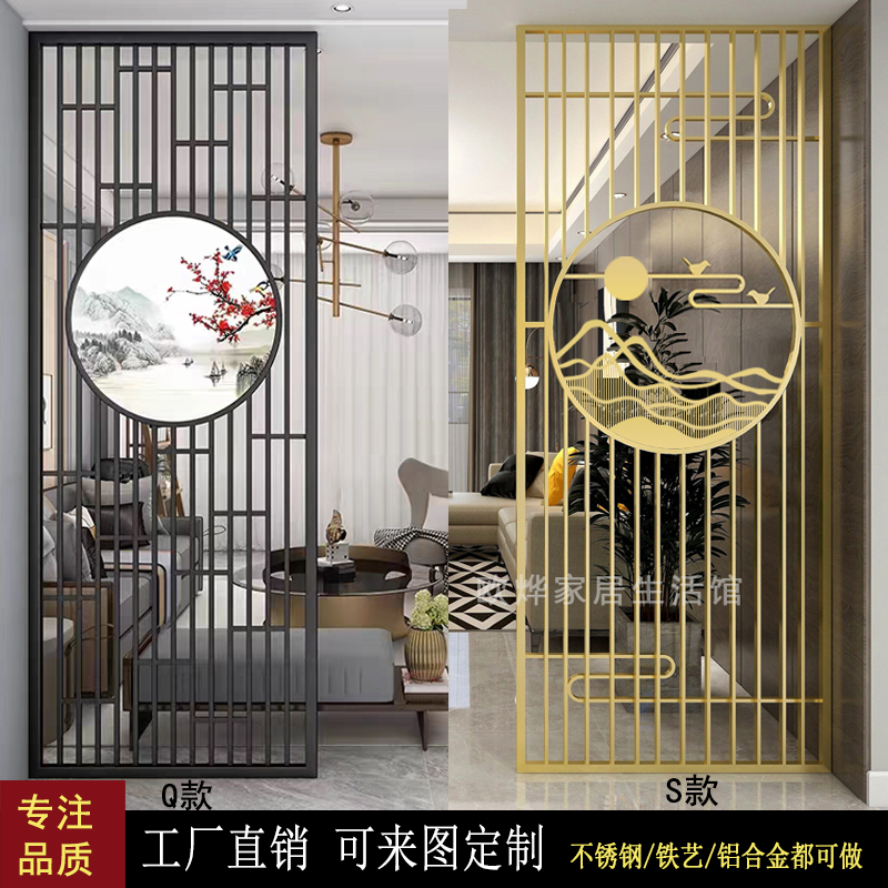 새로운 중국식 철 파티션 스크린 거실 입구 문 그늘진 현관 스테인리스 사무실 식당 장식 가벼운 럭셔리스토어 가기