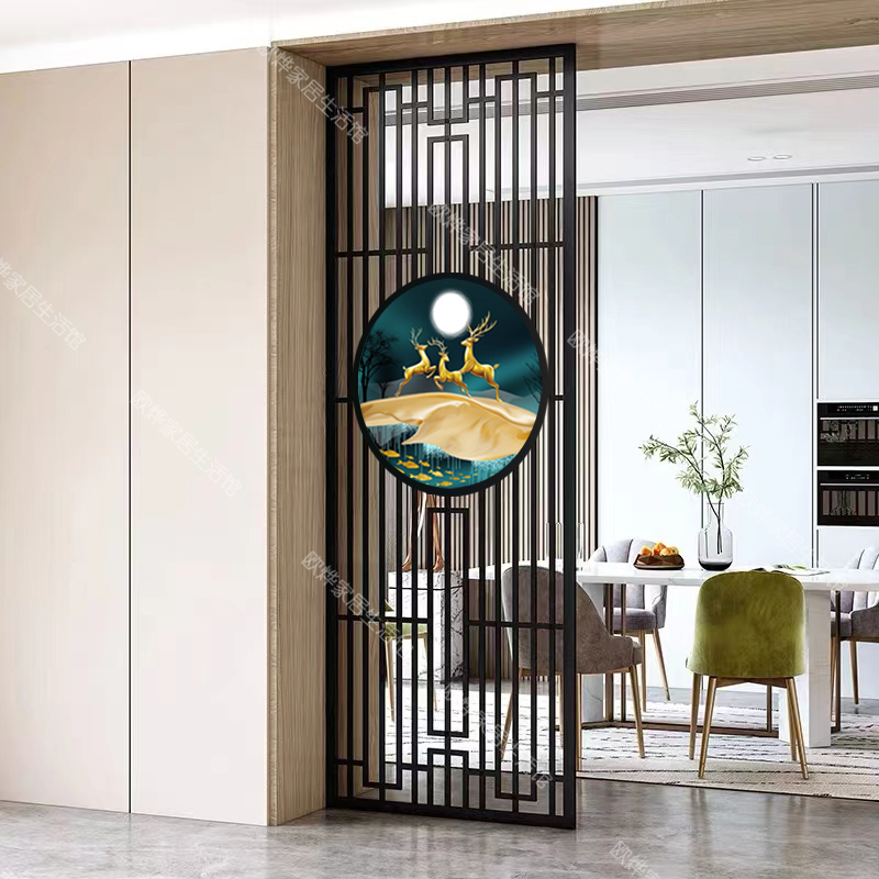 새로운 중국식 철 파티션 스크린 거실 입구 문 그늘진 현관 스테인리스 사무실 식당 장식 가벼운 럭셔리
