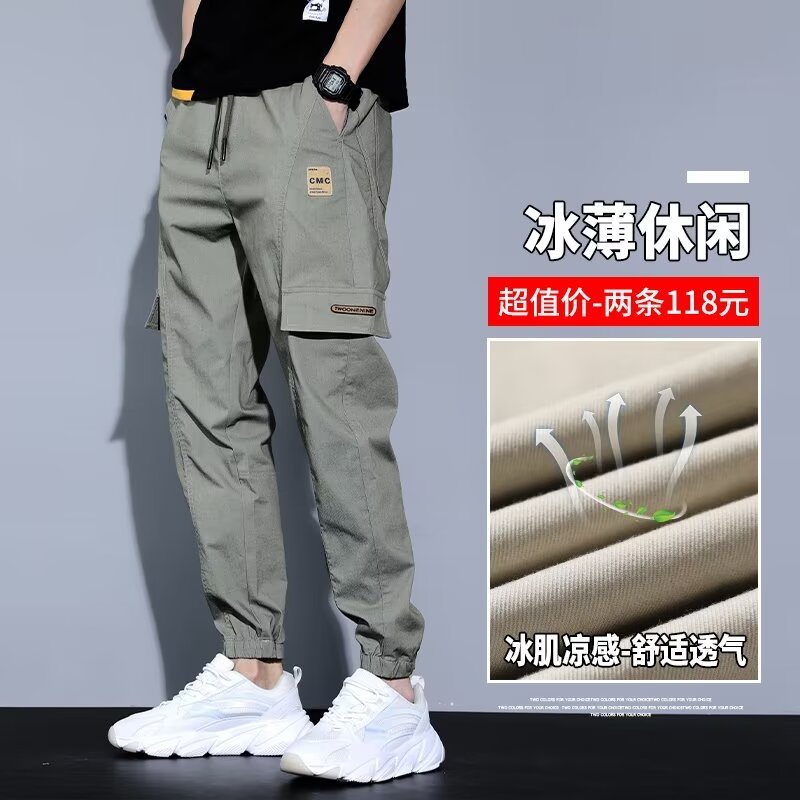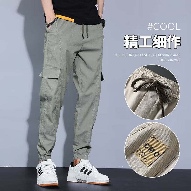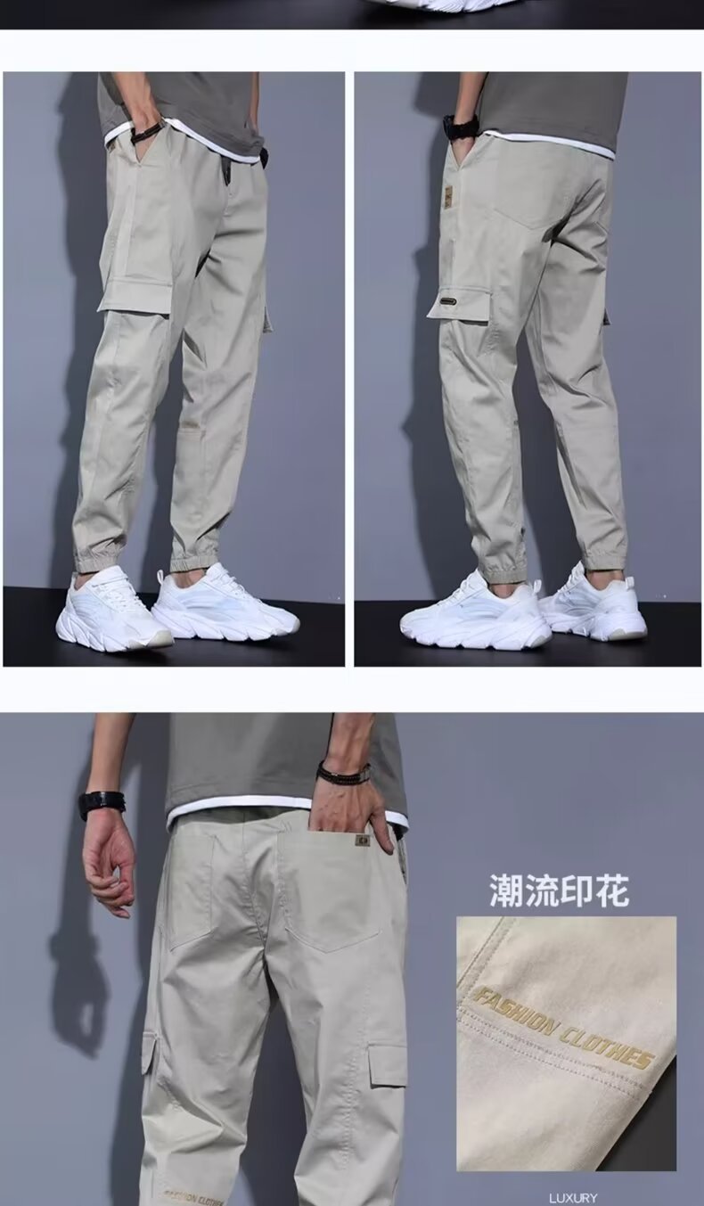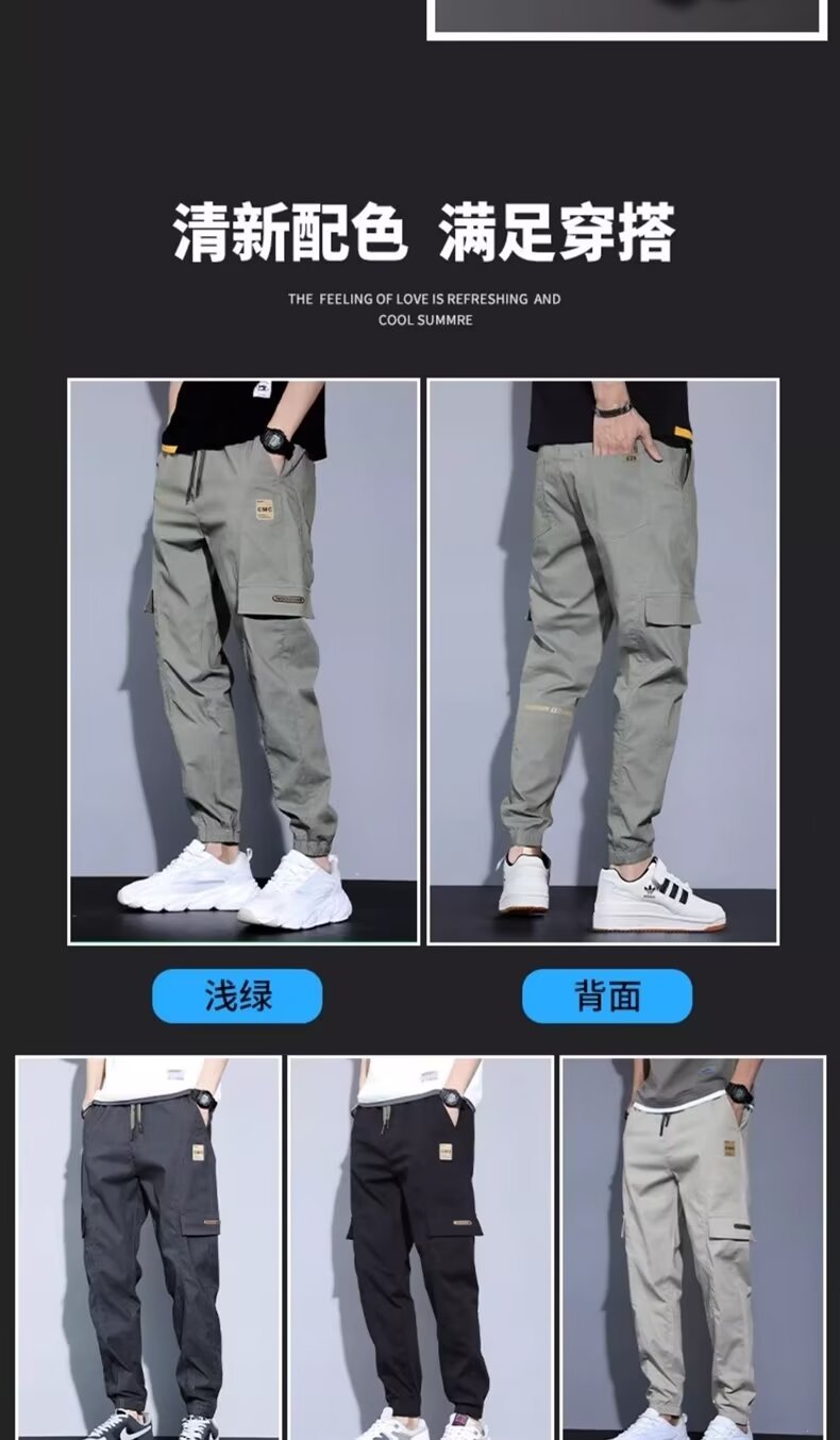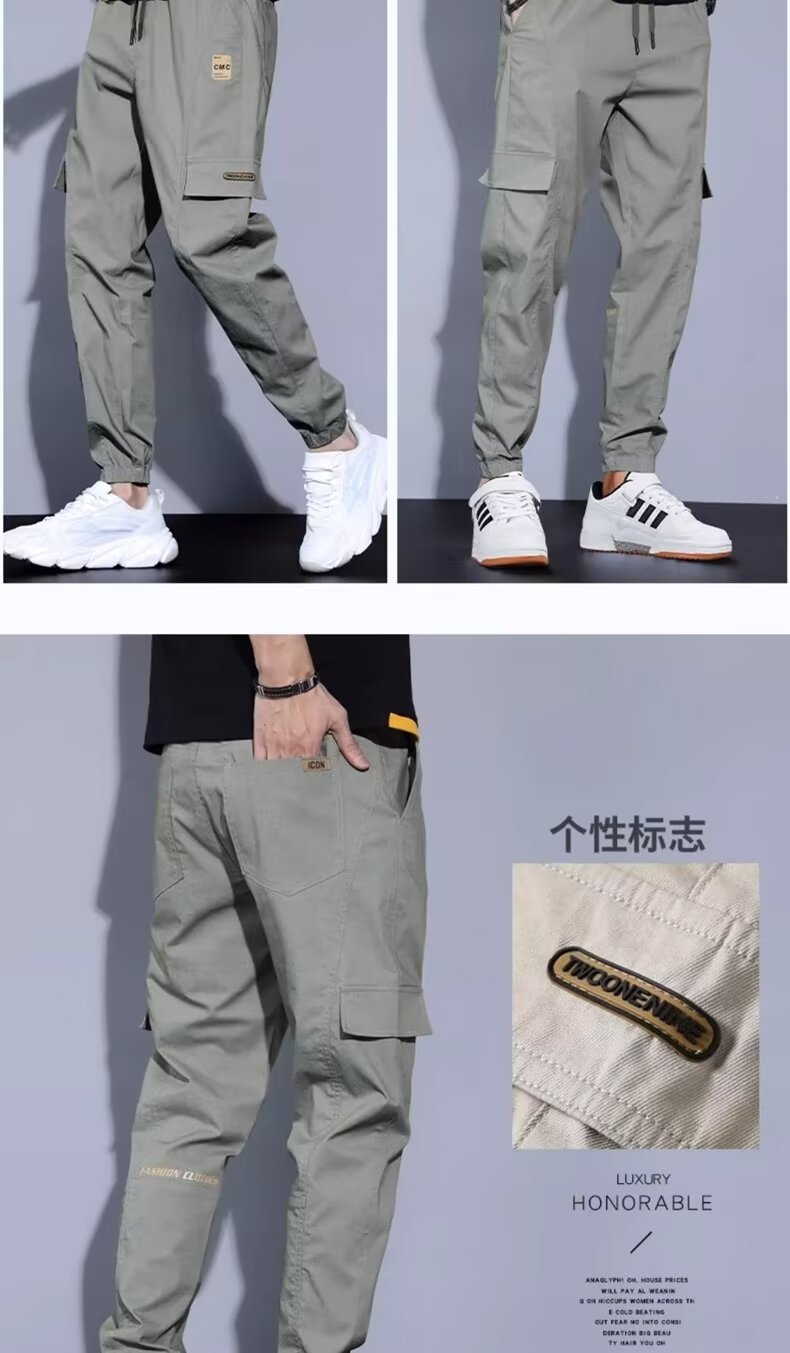 봄, 가을, 여름 남성 캐주얼 바지 얇은 루즈 스트레이트 청소년 작업복 바지 대형 가을 남성 바지 코튼 스포츠 바지