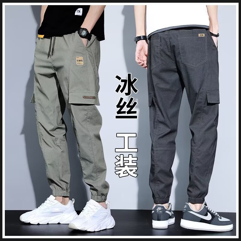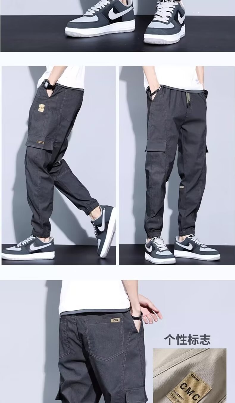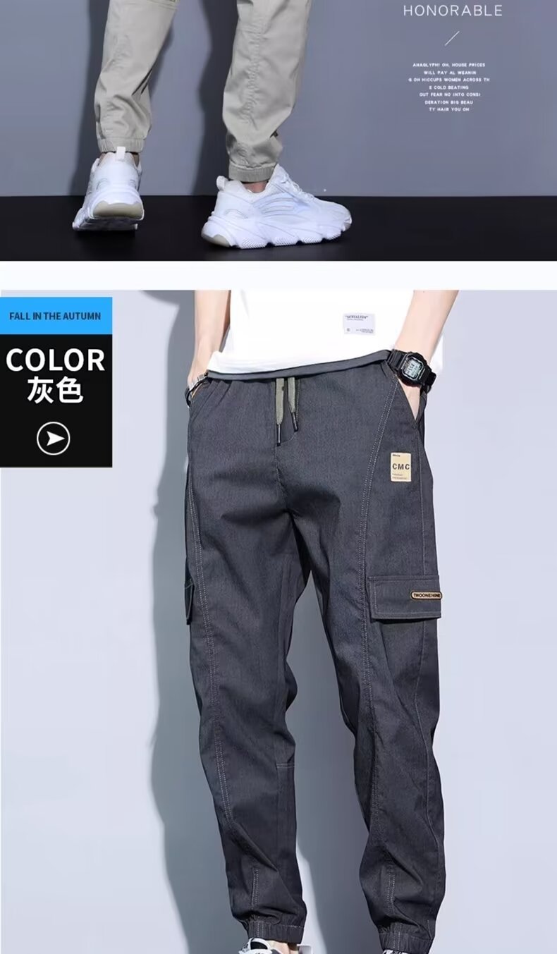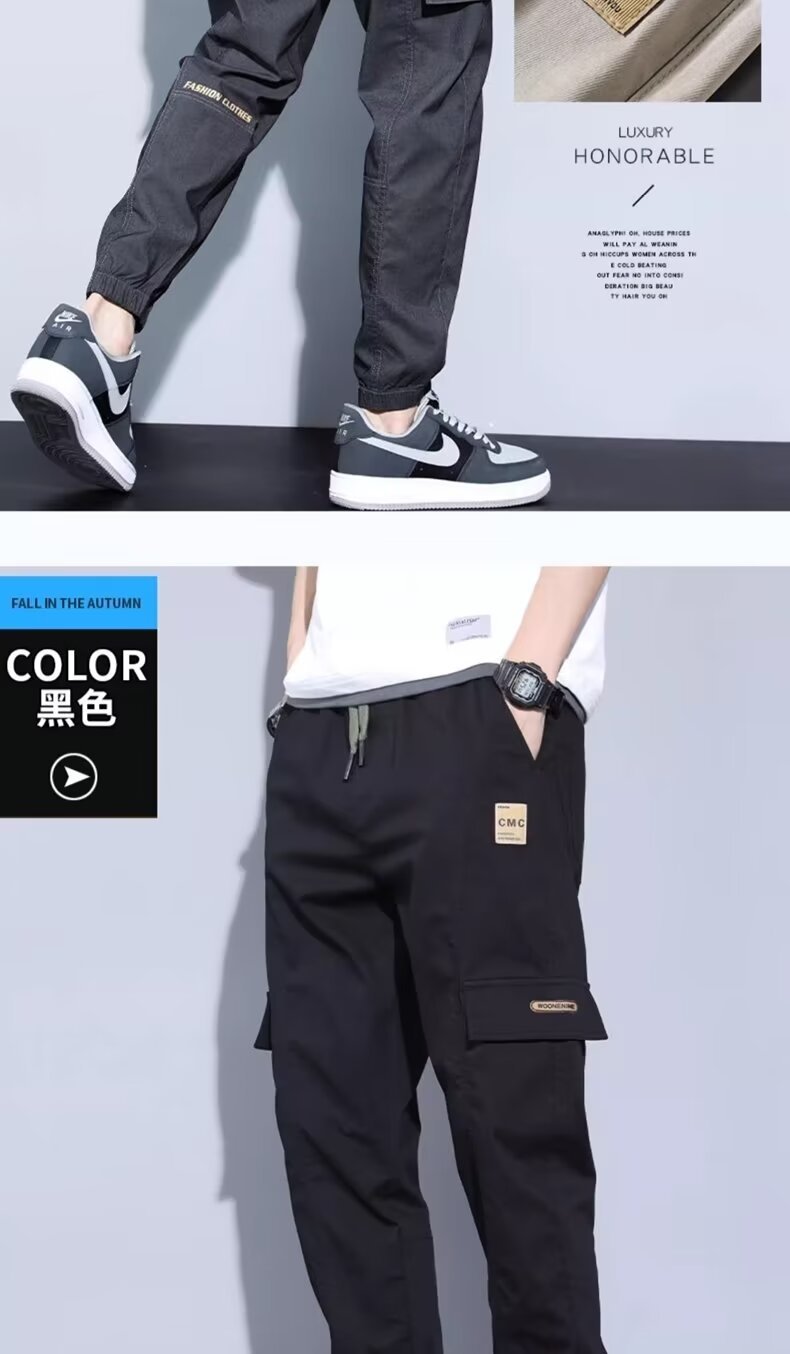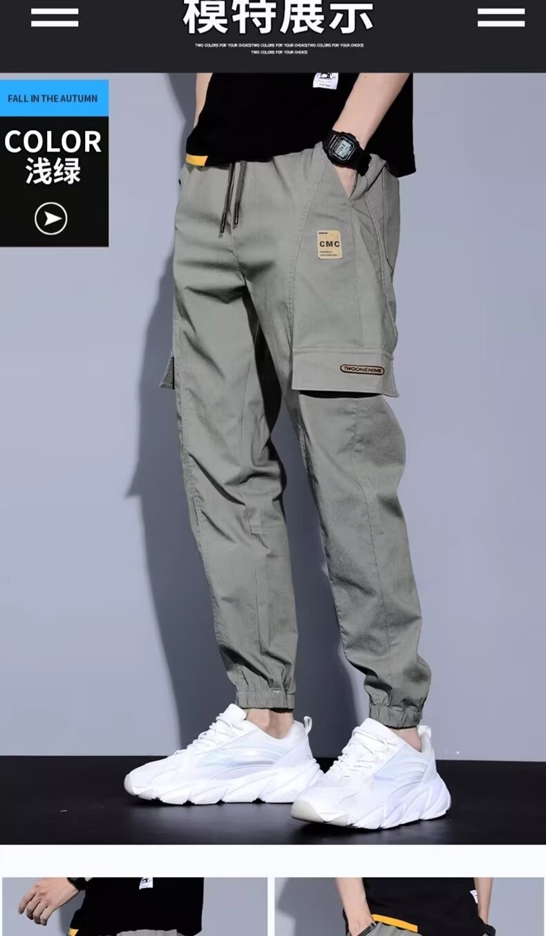 봄, 가을, 여름 남성 캐주얼 바지 얇은 루즈 스트레이트 청소년 작업복 바지 대형 가을 남성 바지 코튼 스포츠 바지스토어 가기