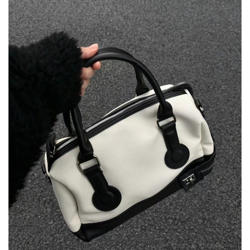 波士顿设计拉链锁扣韩系百搭托特皮波士顿枕头包大容量手提包斜挎