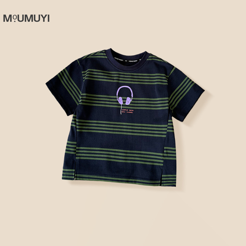 아동복 소년 2025 새 반팔 티셔츠 스트라이프 중소 어린이 여름 한식 캐주얼 편지 인쇄 둥근 목 티셔츠스토어 가기