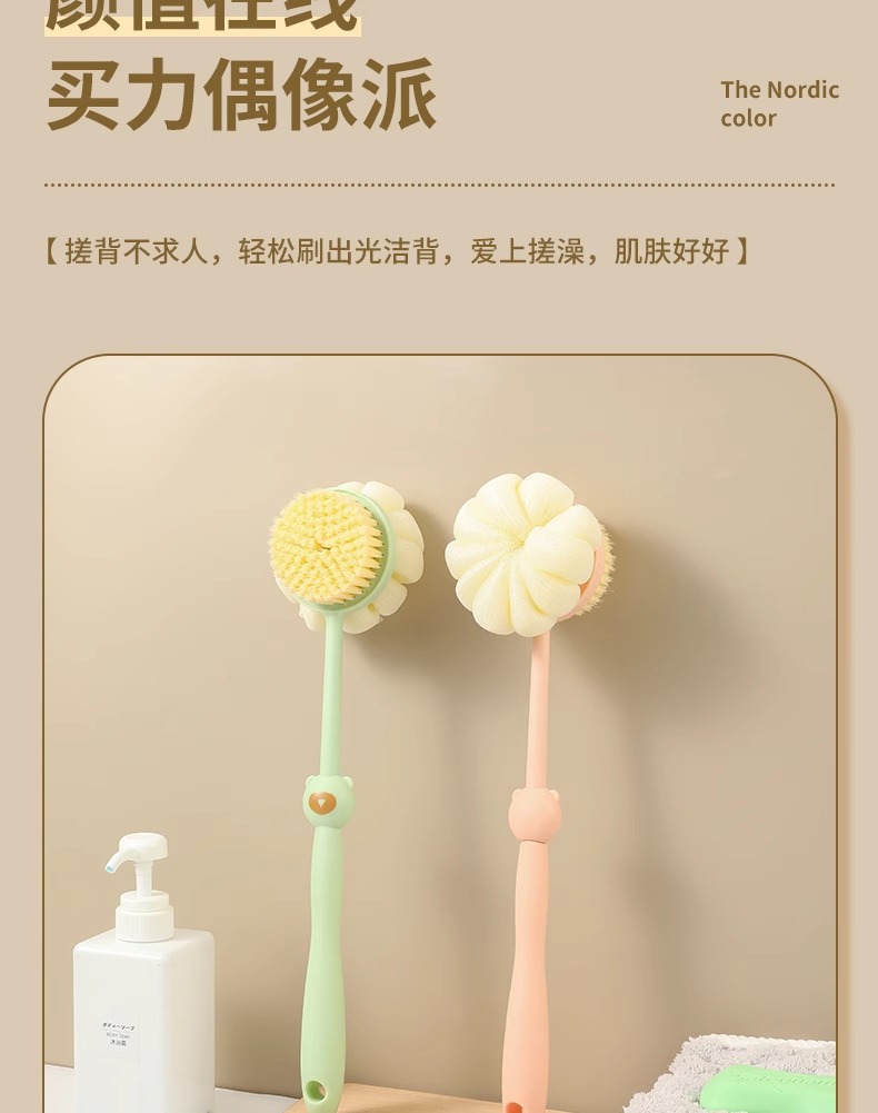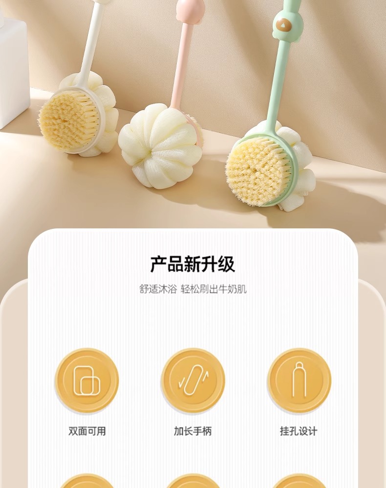 2-in-1 목욕 브러시, 긴 손잡이, 부드러운 강모 목욕 브러시, 목욕 타월, 목욕 공, 등 목욕 브러시스토어 가기