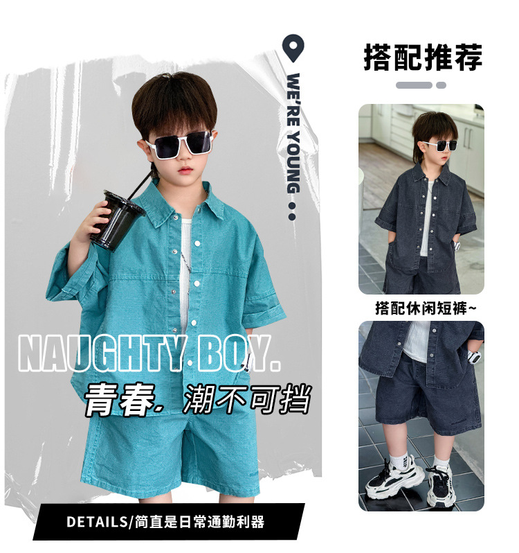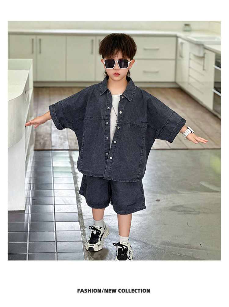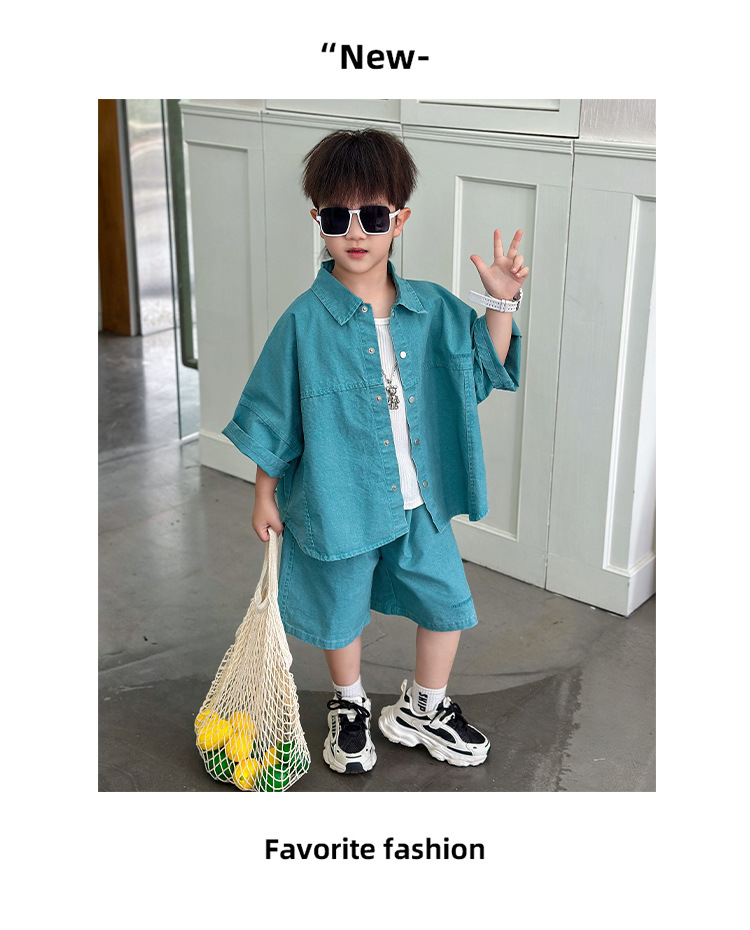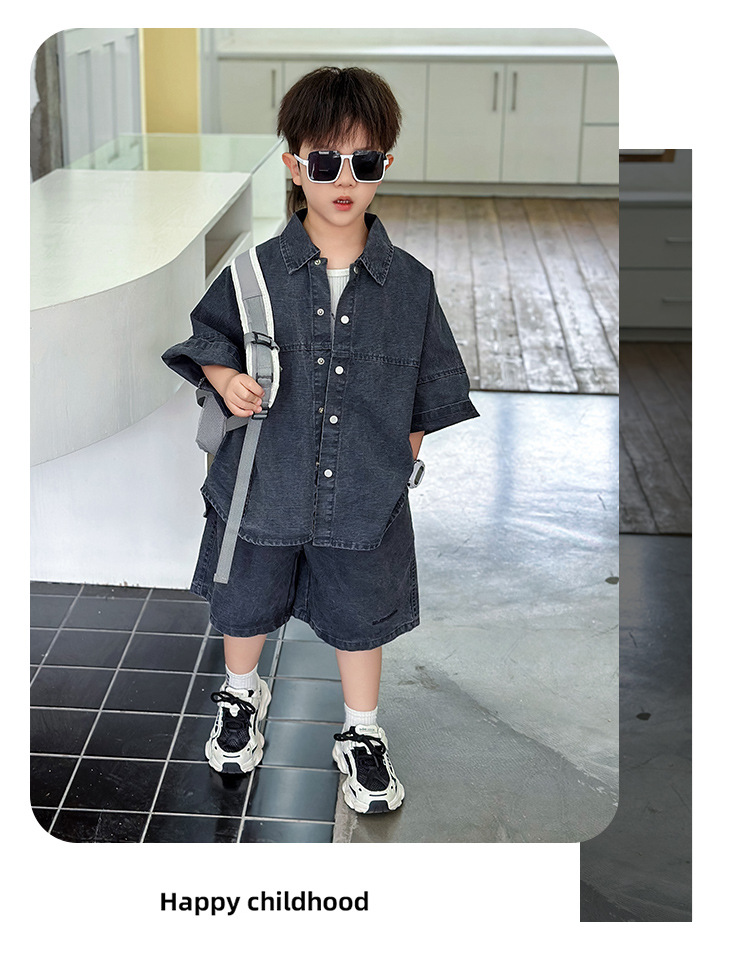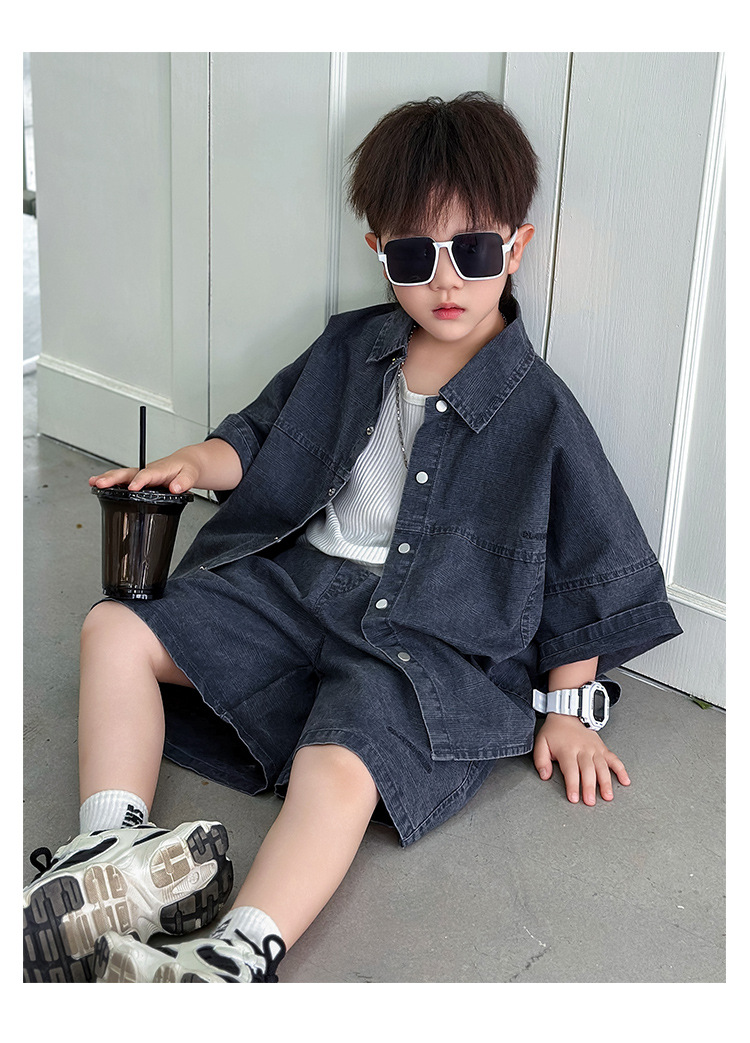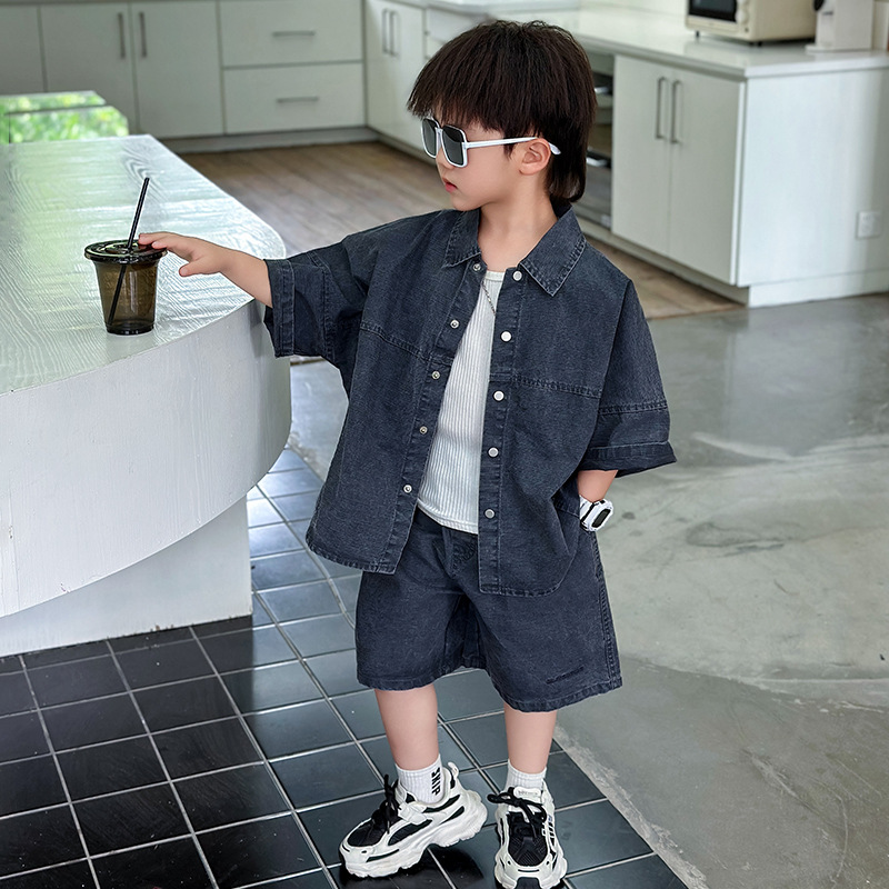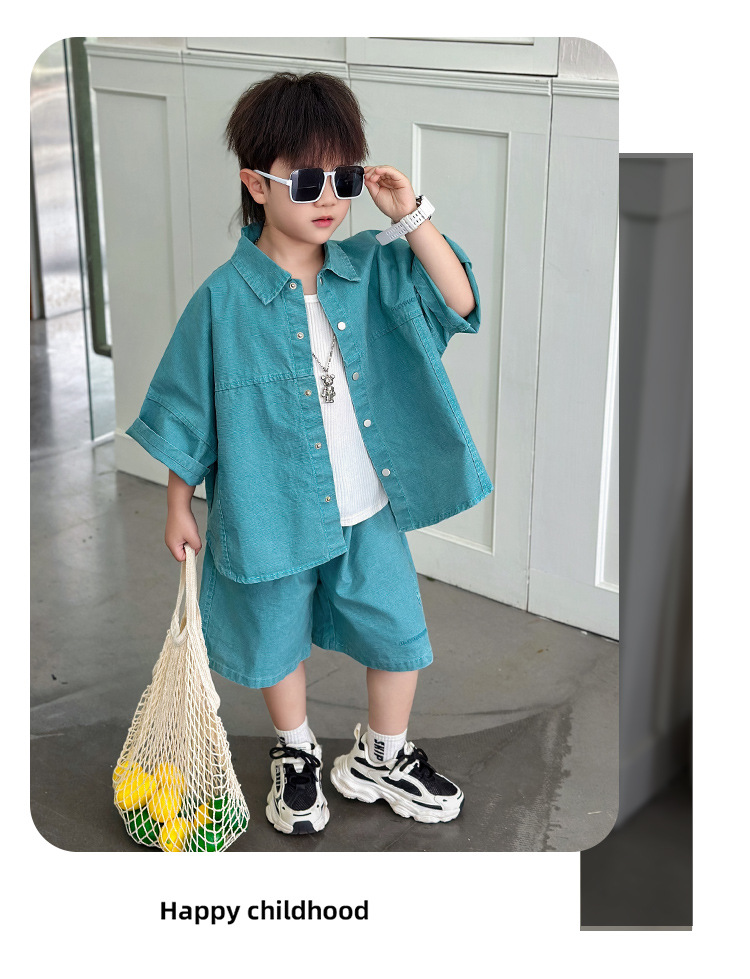남학생 세트 어린이 반팔 셔츠 바지 여름 2025 년 새 아동복 한국 패셔너블 쿨웨어 얇은스토어 가기